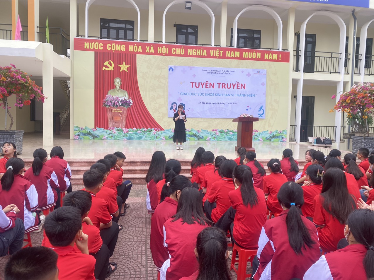 Lứa tuổi vị thành niên luôn là lứa tuổi đẹp và cũng rất nhiều sự tò mò, học hỏi với đời sống xung quanh. Đây cũng là lứa tuổi mà tâm sinh lý phát triển với nhiều biến đổi của tuổi dậy thì, tò mò về sinh lý. Chính vì điều này mà hằng năm, các chương trình giáo dục sức khỏe sinh sản cho lứa tuổi này luôn được chú trọng nhằm trang bị cho các em các kiến thức về sinh sản cũng như khả năng tự bảo vệ mình. Với mong muốn giúp cho các bạn học sinh có thêm kiến thức về sức khoẻ và hiểu rõ bản thân mình hơn, buổi Tuyên truyền về “Giáo dục sức khoẻ sinh sản vị thành niên” đã được Liên đội trường THCS Ngô Sĩ Liên phối hợp với Chi cục Dân số - Kế hoạch hoá Gia đình Tỉnh Bắc Giang, trường Cao đẳng FPT Polytechnic Bắc Giang tổ chức vào sáng ngày 11/12/2023.