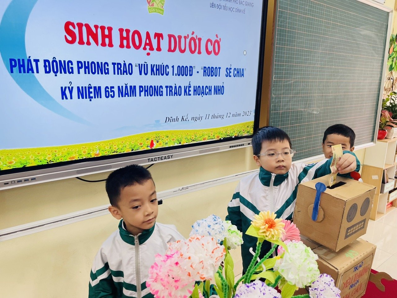 “Vũ khúc 1.000 đồng” là hoạt động diễn ra thường niên của Liên đội trường Tiểu học Dĩnh Kế. Đây là việc làm vô cùng ý nghĩa, mang đậm tính nhân văn sâu sắc, cổ vũ động viên tinh thần rất lớn lao tới các bạn học sinh có hoàn cảnh khó khăn. Ngoài ra, “Vũ khúc 1.000 đồng” còn giúp các em học sinh hiểu hơn về truyền thống “tương thân, tương ái”, “lá lành đùm lá rách” của dân tộc Việt Nam; giúp bồi dưỡng và hình thành nhân cách tốt đẹp cho học sinh. Trong buổi sinh hoạt dưới cờ hôm nay, các bạn đội viên, nhi đồng trong toàn Liên đội cũng được ôn lại 65 năm phong trào Kế hoạch nhỏ. “Vũ khúc 1.000 đồng” là hoạt động diễn ra thường niên của Liên đội trường Tiểu học Dĩnh Kế. Đây là việc làm vô cùng ý nghĩa, mang đậm tính nhân văn sâu sắc, cổ vũ động viên tinh thần rất lớn lao tới các bạn học sinh có hoàn cảnh khó khăn. Ngoài ra, “Vũ khúc 1.000 đồng” còn giúp các em học sinh hiểu hơn về truyền thống “tương thân, tương ái”, “lá lành đùm lá rách” của dân tộc Việt Nam; giúp bồi dưỡng và hình thành nhân cách tốt đẹp cho học sinh. Trong buổi sinh hoạt dưới cờ hôm nay, các bạn đội viên, nhi đồng trong toàn Liên đội cũng được ôn lại 65 năm phong trào Kế hoạch nhỏ.