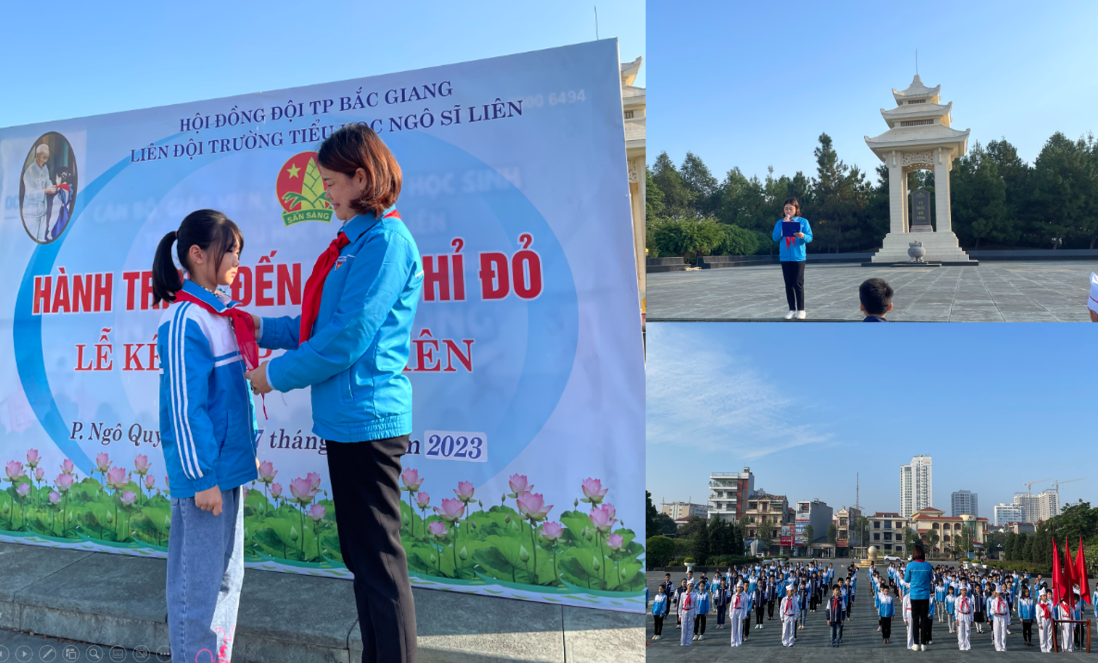 Thực hiện chương trình công tác đội và phong trào thiếu nhi năm học 2023-2024 của Liên đội trường Tiểu học Ngô Sĩ Liên, thiết thực kỉ niệm 79 năm ngày thành lập Quân đội nhân dân VN 22/12, sáng 7/12/2023, Trường tiểu học Ngô Sĩ Liên đã long trọng tổ chức Hành trình đến với địa chỉ đỏ - Lễ kết nạp đội viên mới cho 175 dự bị đội viên lớp 3 vào tổ chức đội, đây là những gương mặt tiêu biểu trong học tập, rèn luyện, tích cực tham gia các phong trào thi đua của nhà trường.