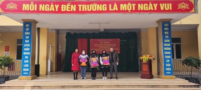 Sau khi tuyên bố lí do, giới thiệu đại biểu, thầy Nguyễn Văn Bắc - Phó Hiệu trưởng và cô Nguyễn Thị Thùy Liêm – Tổ trưởng tổ KH xã hội đã trao thưởng cho 03 học sinh đạt giải Khuyến khích cuộc thi vẽ tranh “Thế giới muôn màu năm 2023”. Đó là các em: Đỗ Thùy Dương – lớp 7A1, Tống Bảo Ngọc – lớp 8A2, Thân Ngọc Ánh – lớp 9A1.