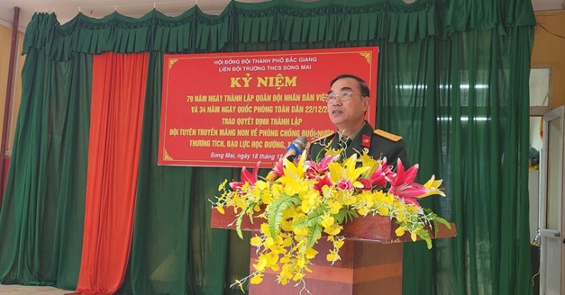 Được sự chỉ đạo của Chi bộ, của lãnh đạo trường THCS Song Mai, cùng với sự phối hợp đầy tinh thần trách nhiệm của hội cựu chiến binh xã Song Mai, hôm nay liên đội trường THCS Song Mai tổ chức buổi tọa đàm nói chuyện truyền thống chào mừng 79 năm ngày thành lập Quân đội nhân dân Việt Nam (22/12/1944-22/12/2023) và 34 năm ngày hội quốc phòng toàn dân 22-12 (22/12/1989-22/12/2023).