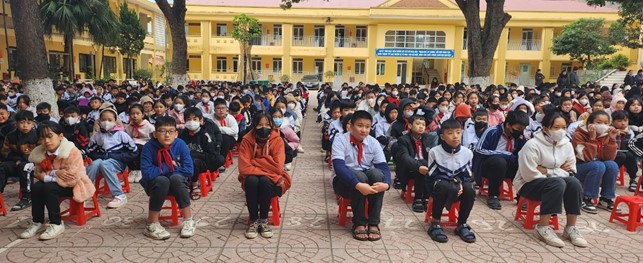 Sau khi nghe bác Thân Hoàng Nam – Chủ tịch Hội Cựu chiến binh xã Song Mai nói chuyện, các học sinh nhà trường đã hào hứng tham gia phần giao lưu, trả lời câu hỏi về các chặng đường 79 năm hình thành, phát triển của Quân đội Nhân dân Việt Nam. Các em đã hào hứng tham gia trả lời các câu hỏi giao lưu của bác Nam và chương trình. Các câu trả lời đều được các em trả lời rất xuất sắc.