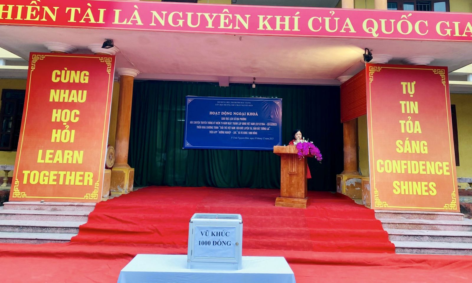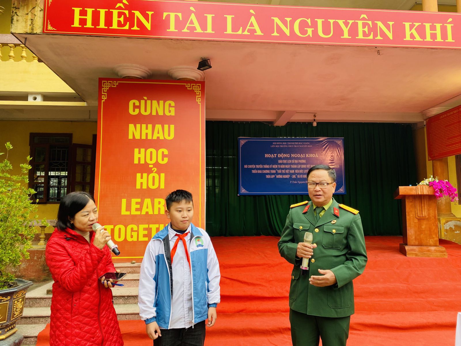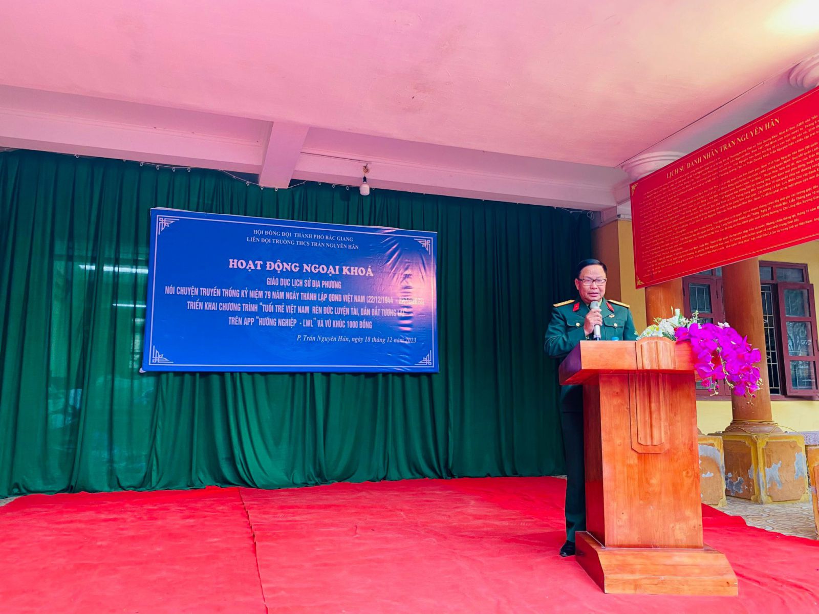 Thực hiện chương trình công tác Đội và phong trào thiếu nhi năm học 2023-2024 của Hội đồng Đội thành phố Bắc Giang, sáng ngày 18/12/2023 Liên đội trường THCS Trần Nguyên Hãn tổ chức chương trình ngoại khoá: Nói chuyện truyền thống Kỷ niệm 79 năm Ngày thành lập Quân đội Nhân dân Việt Nam ( 22/12/1944 – 22/12/2023), triển khai chương trình “ Tuổi trẻ Việt Nam – Rèn đức luyện tài, dẫn dắt tương lai” và Vũ khúc 1000 đồng.