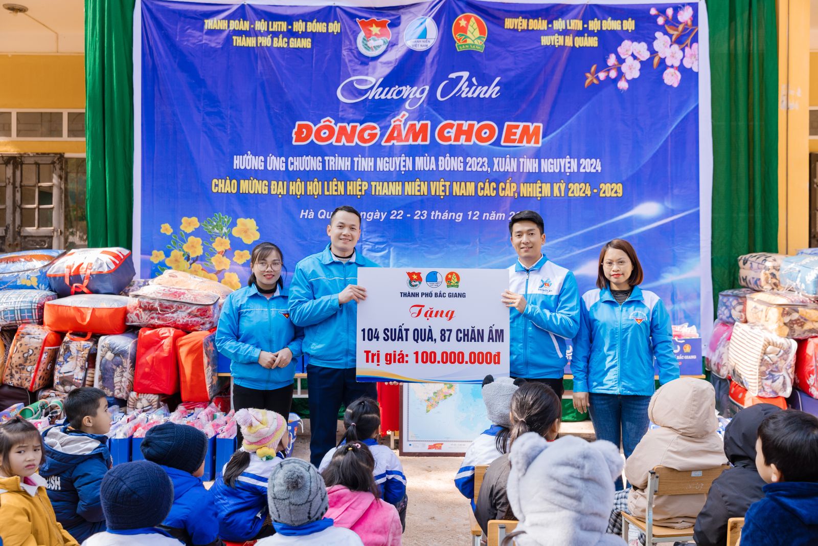 Đoàn tình nguyện đã đến thăm và tặng quà tại điểm trường Yên Luật, thị trần Xuân Hòa, trao 104 suất quà cho các em học sinh thuộc hộ nghèo và cận nghèo, gồm: cặp sách, vở viết, bút viết, bút chì, tảy và bánh kẹo…; tặng 87 chăn ấm, cho các em học sinh có hoàn cảnh khó khăn, với tổng giá trị 100 triệu đồng, toàn bộ các phần qua trên là do đoàn viên, thanh niên, giáo viên, học sinh trên địa bàn thành phố ủng hộ.