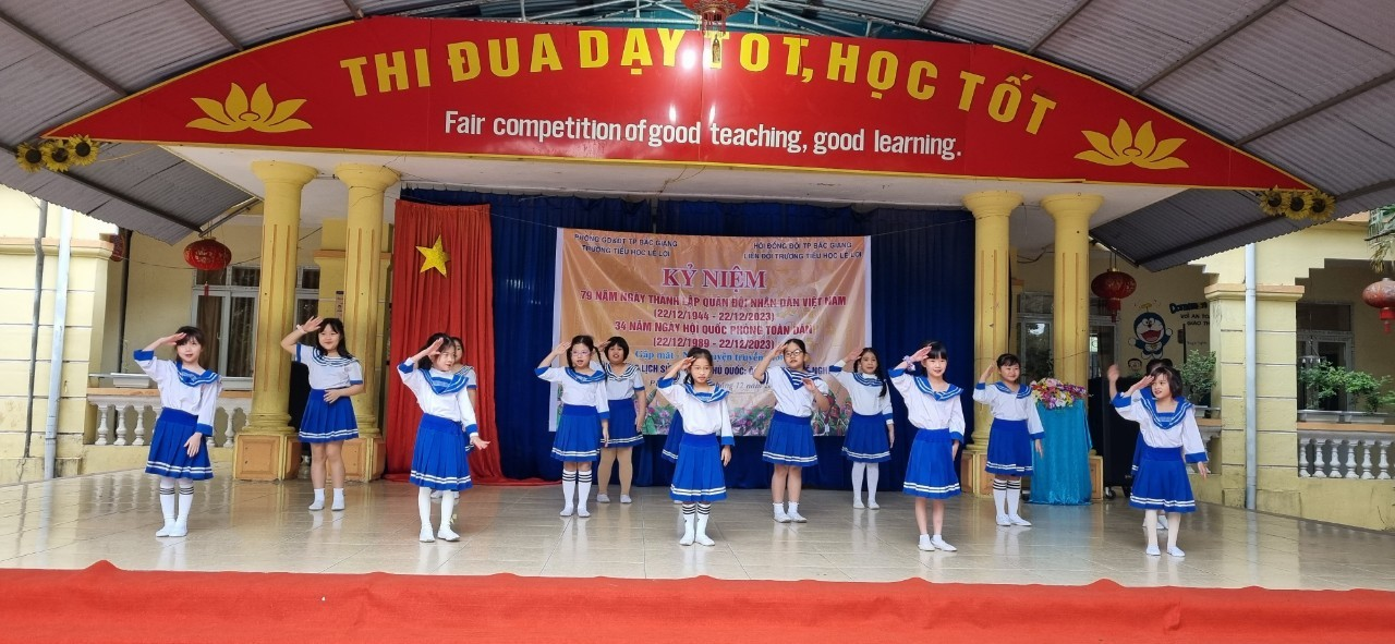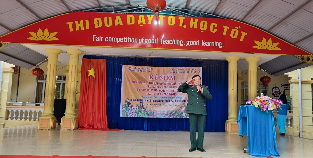 Được sự nhất trí và chỉ đạo của Đảng ủy, HĐND, UBND, phường Lê Lợi, Sự hướng dẫn và chỉ đạo của chi bộ Đảng, BGH nhà trường TH Lê Lợi cùng với sự phối hợp đầy tinh thần trách nhiệm của hội cựu chiến binh phường Lê Lợi, liên đội trường TH Lê Lợi tổ chức hoạt động ngoại khóa, toạ đàm nói chuyện truyền thống chào mừng 79 năm ngày thành lập QĐNDVN 22/12/1944 – 22/12/2023 và 34 năm Ngày hội quốc phòng toàn dân 22/12/1989 – 22/12/2023.