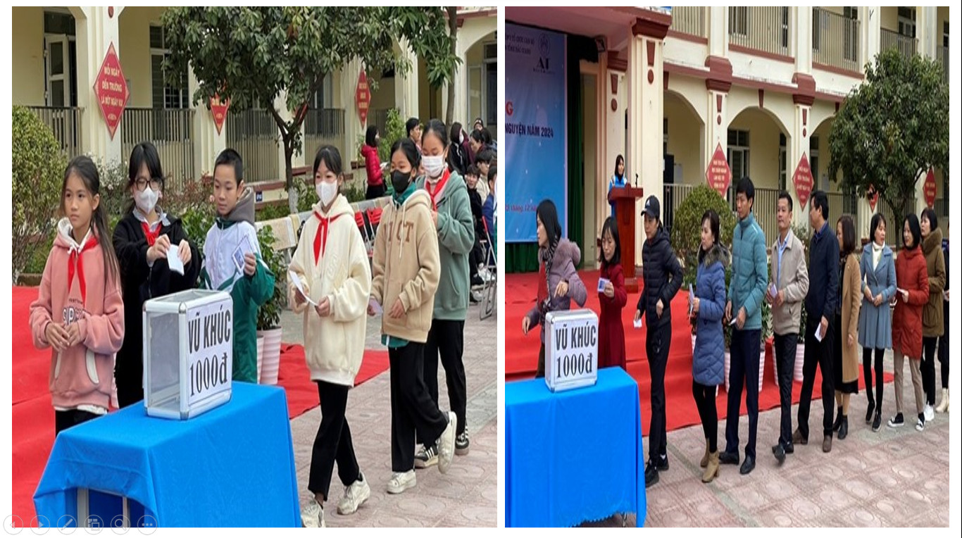 Ngay sau buổi Lễ phát động là Chương trình “Vũ khúc 1000 đồng” gây quỹ ủng hộ xây dựng Ngôi nhà khăn quàng đỏ năm 2024 và Chương trình “Đổi rác thải tái chế lấy cây xanh” nhằm chung tay xây dựng thành phố Bắc Giang xanh, sạch của thầy và trò Nhà trường, đây là các Chương trình vô cùng ý nghĩa, mang đậm tính nhân văn sâu sắc. Đặc biệt là Chương trình “Vũ khúc 1000 đồng” đã động viên tinh thần rất lớn lao tới các bạn học sinh có hoàn cảnh khó khăn, bồi dưỡng và hình thành nhân cách tốt đẹp cho các em học sinh. Mặt khác còn giúp các em hiểu hơn về truyền thống “tương thân, tương ái”, “lá lành đùm lá rách” của dân tộc Việt Nam.