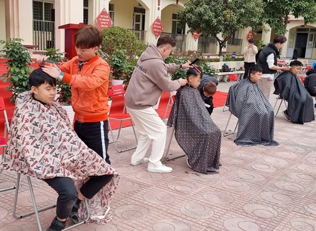 Cũng tại buổi Lễ, các anh chị Salon tóc AT do anh Nguyễn Tuấn Anh làm chủ cơ sở có địa chỉ tại 506, đường Lê Lợi, thành phố Bắc Giang đã dành 20 suất cắt tóc miễn phí cho các em học sinh, đặc biệt là các em có hoàn cảnh khó khăn của Trường. Trong thời gian qua Salon tóc AT đã có rất nhiều hoạt động chung tay thực hiện an sinh xã hội trên địa bàn phường và thành phố.