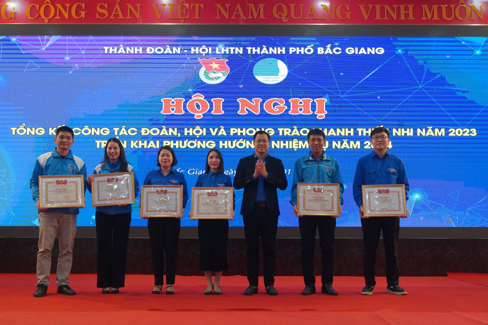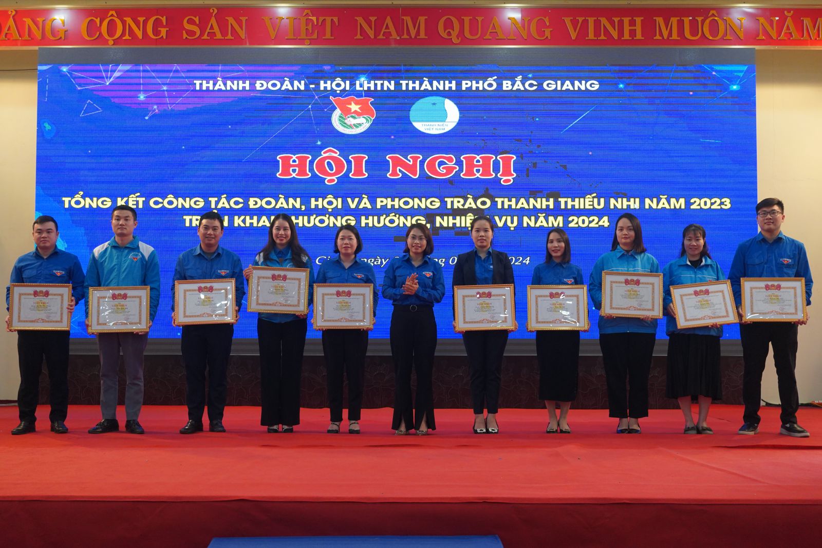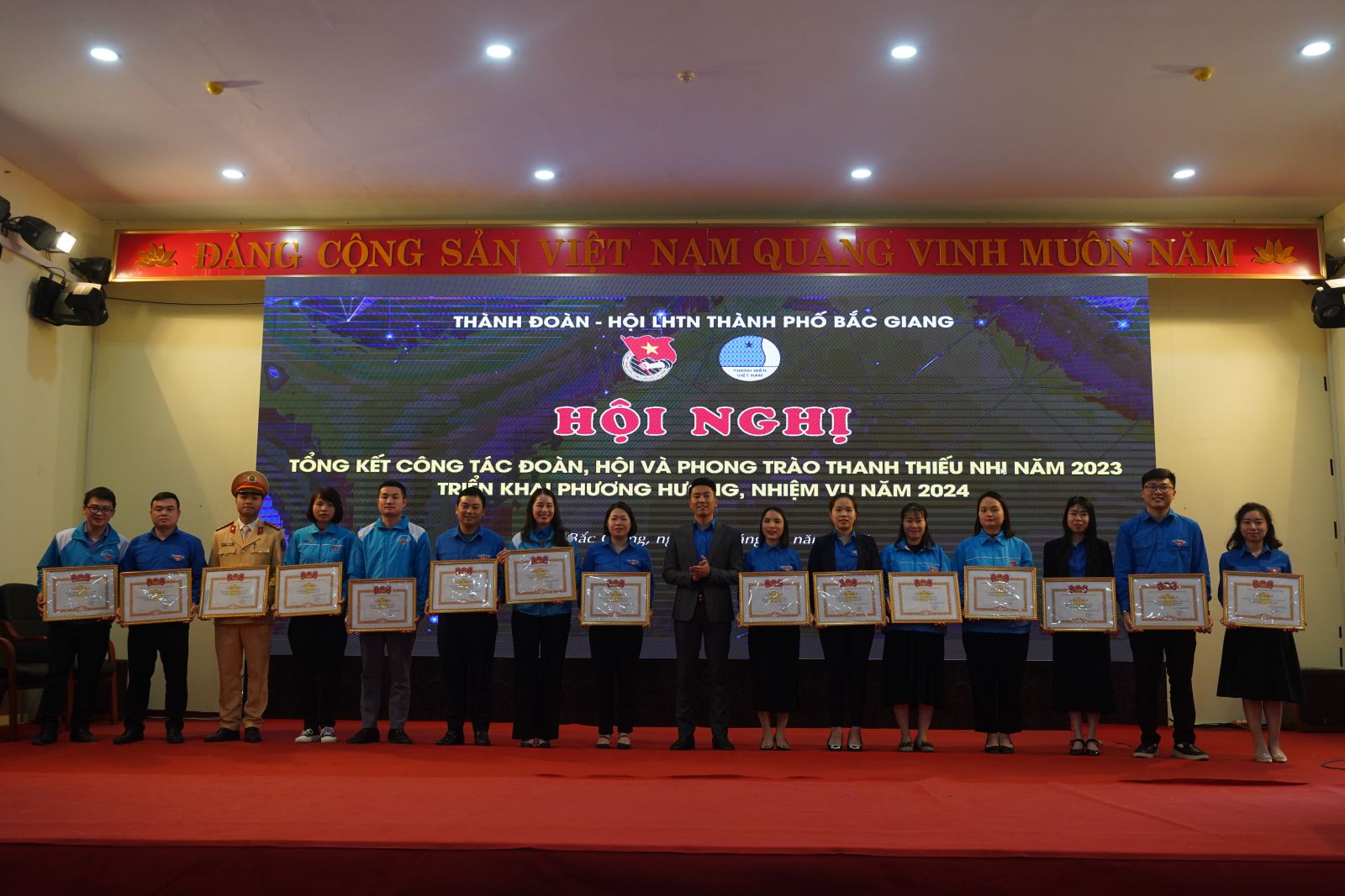 Trong dịp này, Hội nghị đã trao bằng khen của Trung ương Đoàn, Ban Chấp hành Tỉnh đoàn và giấy khen của Ban Chấp hành Thành đoàn cho 16 tập thể và 23 cá nhân đạt thành tích xuất sắc trong triển khai Chiến dịch Tình nguyện Hè 2023 và có thành tích xuất sắc trong công tác Đoàn, Hội và phong trào thanh thiếu nhi năm 2023.