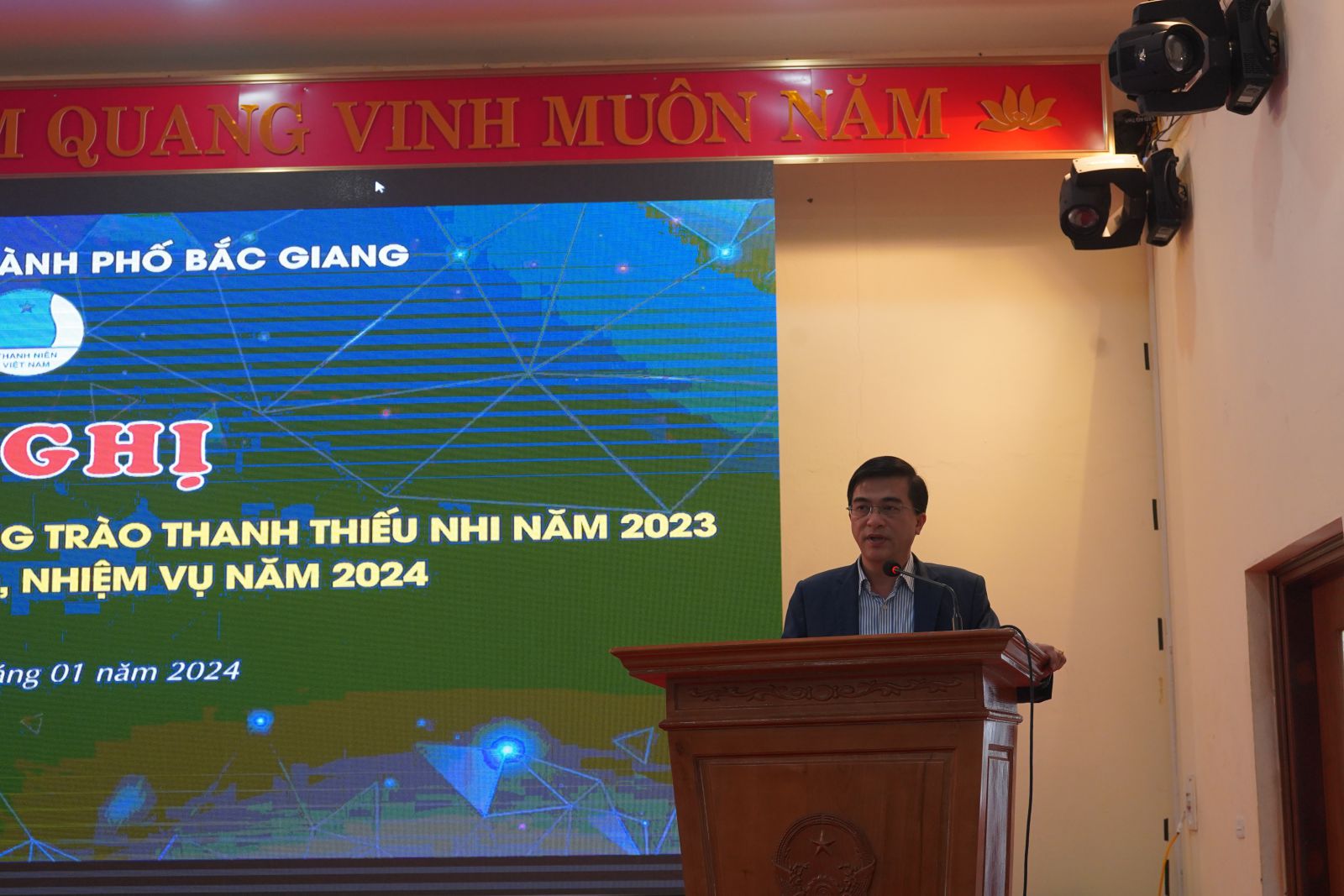 Phát biểu tại hội nghị, đồng chí Giáp Xuân Cảnh- Phó Bí thư Tỉnh đoàn, Chủ tịch Hội đồng Đội tỉnh ghi nhận và chúc mừng thành tích công tác Đoàn, Hội và phong trào thanh thiếu nhi thành phố đạt được năm 2023, với nhiều hoạt động nổi bật là điểm sáng của tỉnh, các phong trào đã có sự lan toả mạnh mẽ, chủ động, linh hoạt, hiệu quả trong triển khai thực hiện các hoạt động. Năm 2024, với chủ đề “Năm Thanh niên tình nguyện”, đồng chí Phó bí thư Tỉnh đoàn đề nghị các cấp bộ đoàn thành phố tiếp tục xác định các nhóm công trình thanh niên có lộ trình thực hiện cụ th , chú trọng các công trình tình nguyện có tính lâu dài bền vững, có sự liên kết giữa các đơn vị; phát huy vai trò nòng cốt trong phối hợp, chỉ đạo đẩy mạnh công tác tuyên truyền, tổ chức Đại hội Hội Liên hiệp Thanh niên các cấp; thực hiện hiệu quả 3 Đề án về chuyển đổi số; giáo dục lý tưởng, đạo đức cách mạng cho thanh niên; đoàn kết thanh niên công nhân.