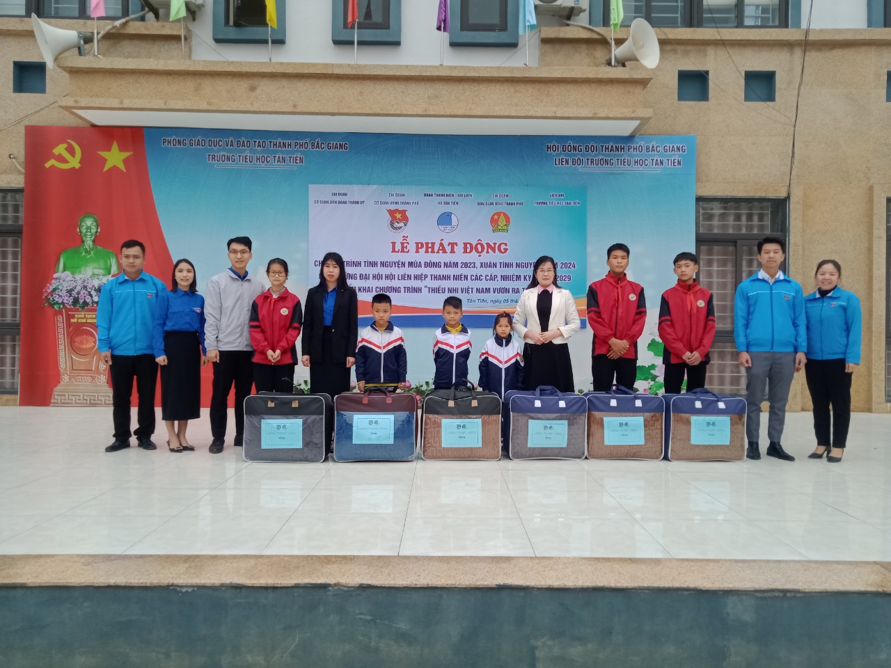 Chào đón một mùa đông đầy ấm áp, yêu thương cùng với hương xuân tươi mới. Sáng ngày 05 tháng 01 năm 2024, Trường Tiểu học Tân Tiến long trọng tổ chức Lễ phát động Chương trình “Tình nguyện mùa Đông 2023 và Xuân tình nguyện năm 2024”. Nhằm phát huy tinh thần tương thân tương ái của cán bộ, hội viên, thanh niên chung sức giúp đỡ thanh thiếu nhi và đồng bào khó khăn, góp phần đảm bảo an sinh xã hội, xây dựng tổ chức Hội Liên hiệp thanh niên xã nhà ngày càng vững mạnh và lập thành tích chào mừng Đại hội Hội Liên hiệp thanh niên Việt Nam các cấp, nhiệm kỳ 2024 - 2029.