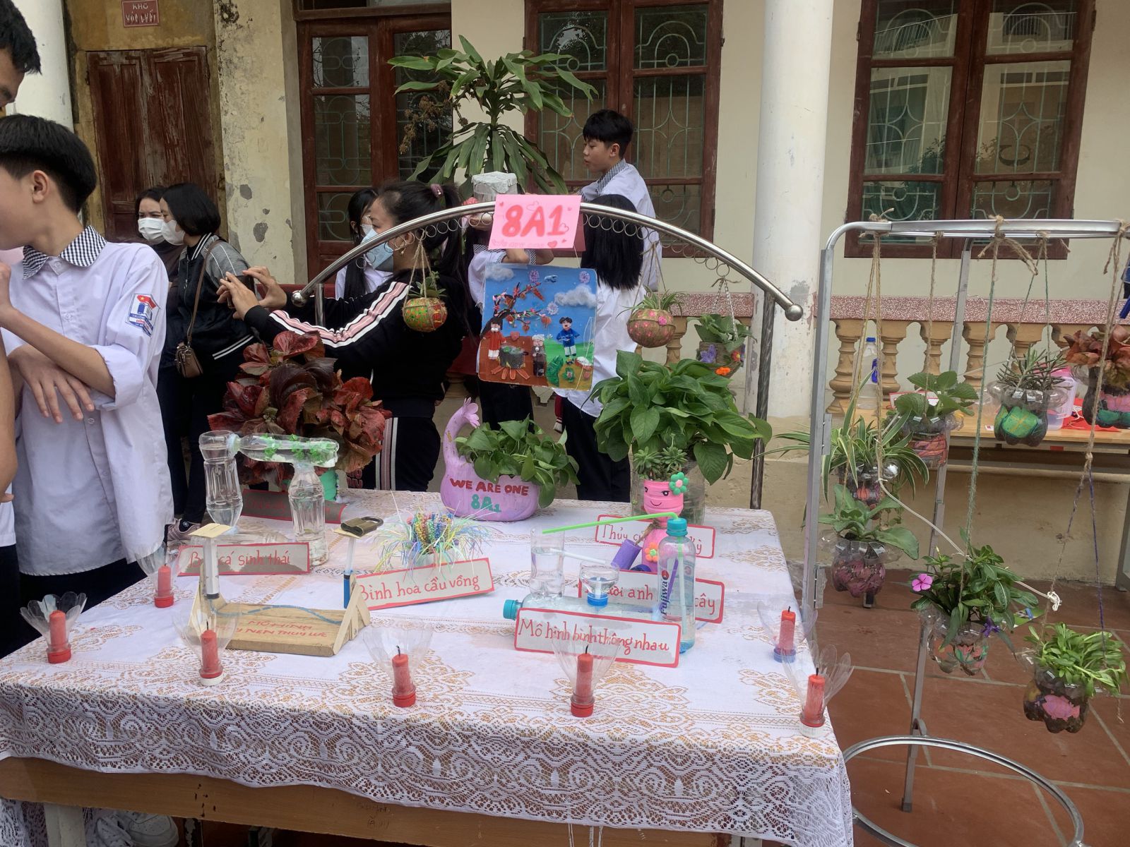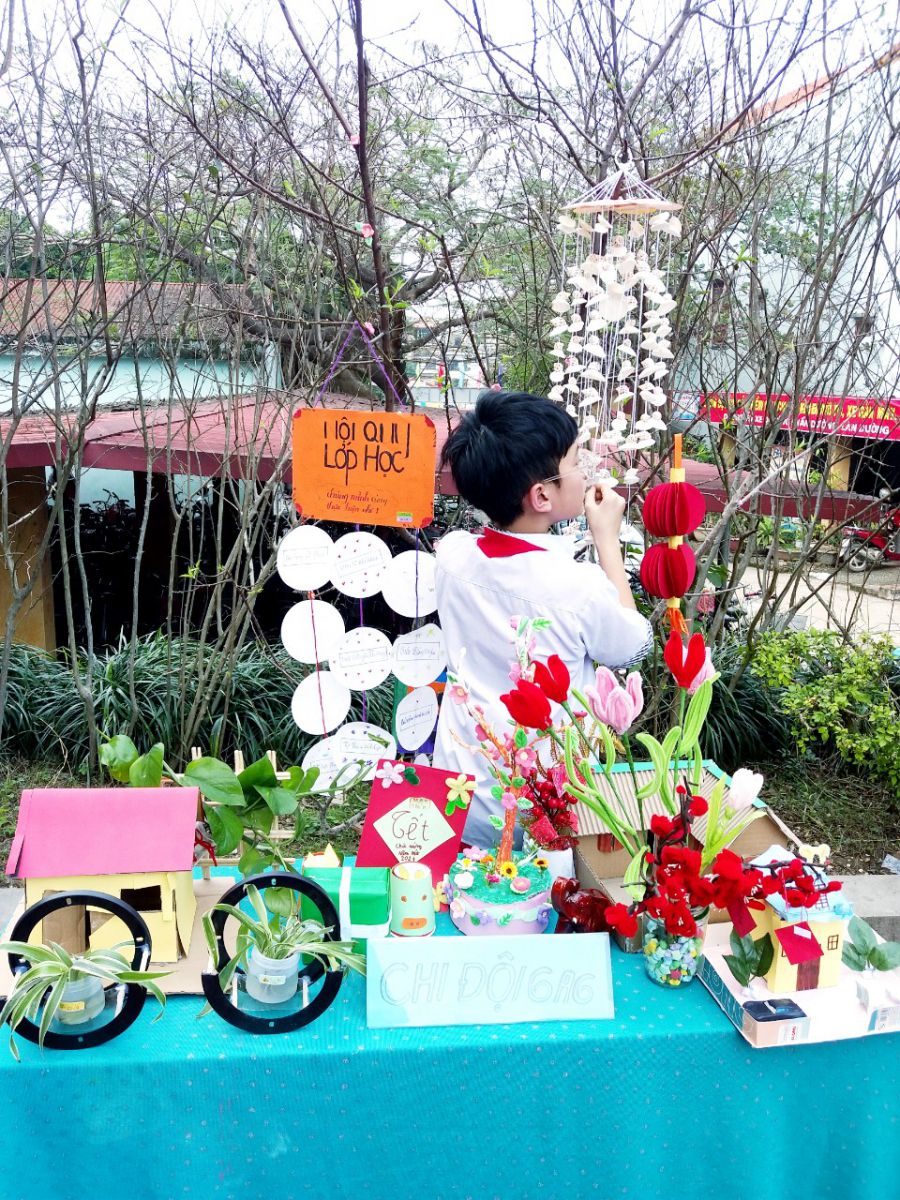 Tiếp đến là phần thi góc trưng bày sản phẩm STEM từ đôi bàn tay khéo léo và đầy sáng tạo của học sinh khối 6,7,8. Các em đã chủ động đưa ra các ý tưởng sản phẩm, chuẩn bị nguyên vật liệu, tự thiết kế những đồ dùng, vật dụng rất hữu ích. Hơn thế nữa các em còn sắp xếp, bày trí những sản phẩm đó rất khoa học và đẹp mắt.