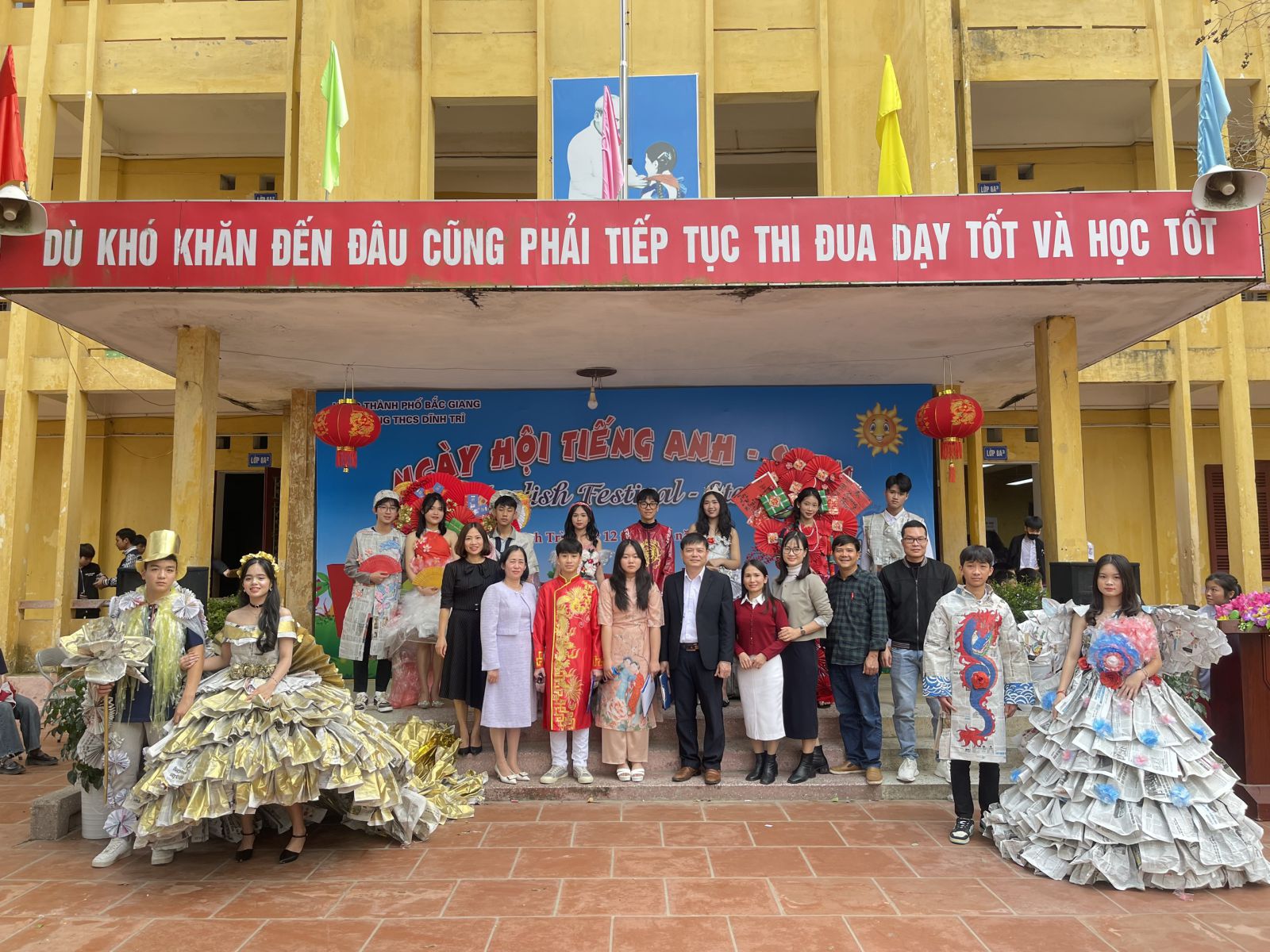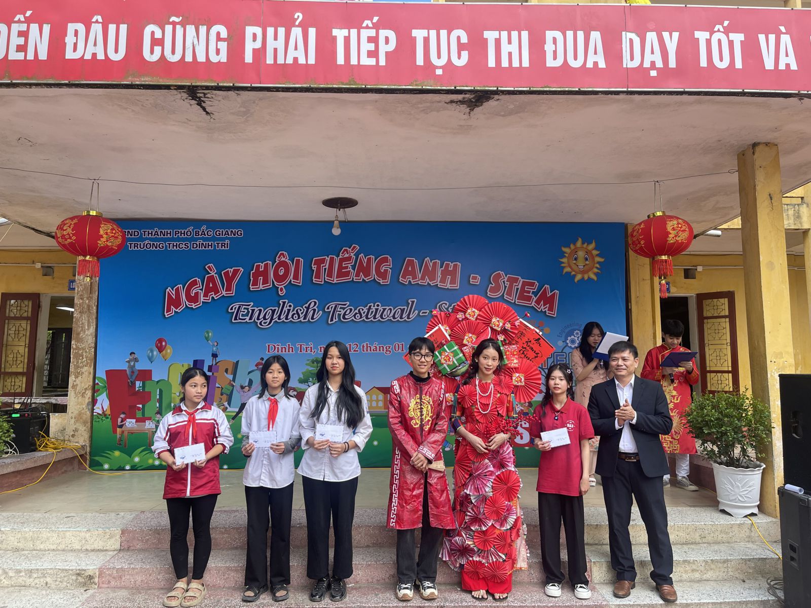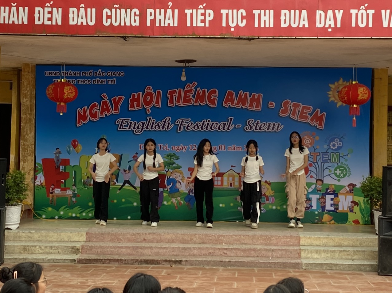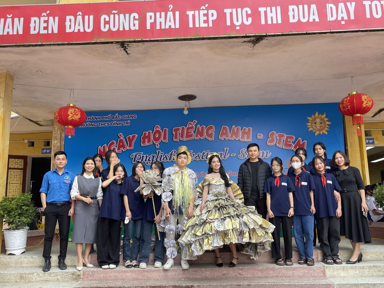 Ngày hội tiếng Anh - STEM - Ngày hội của những sáng tạo và trao giá trị yêu thương đã khép lại trong không khí vui tươi, sôi nổi của các em học sinh cũng như giáo viên và các bậc phụ huynh của trường THCS Dĩnh Trì - Một ngày hội đầy ắp tiếng cười và niềm vui được thể hiện mình qua các trò chơi, các phần thi, các sản phẩm sáng tạo… Ngày hội đã tạo ra cho các em học sân chơi lành mạnh, bổ ích làm phong phú thêm các hoạt động ngoại khoá trong nhà trường, tạo diễn đàn giao lưu để thúc đẩy phong trào học tiếng Anh, làm các sản phẩm STEM.