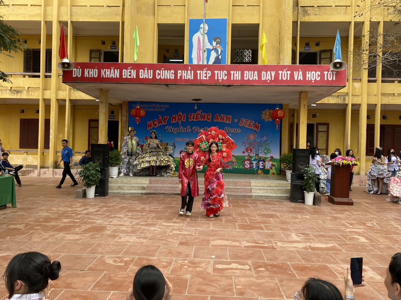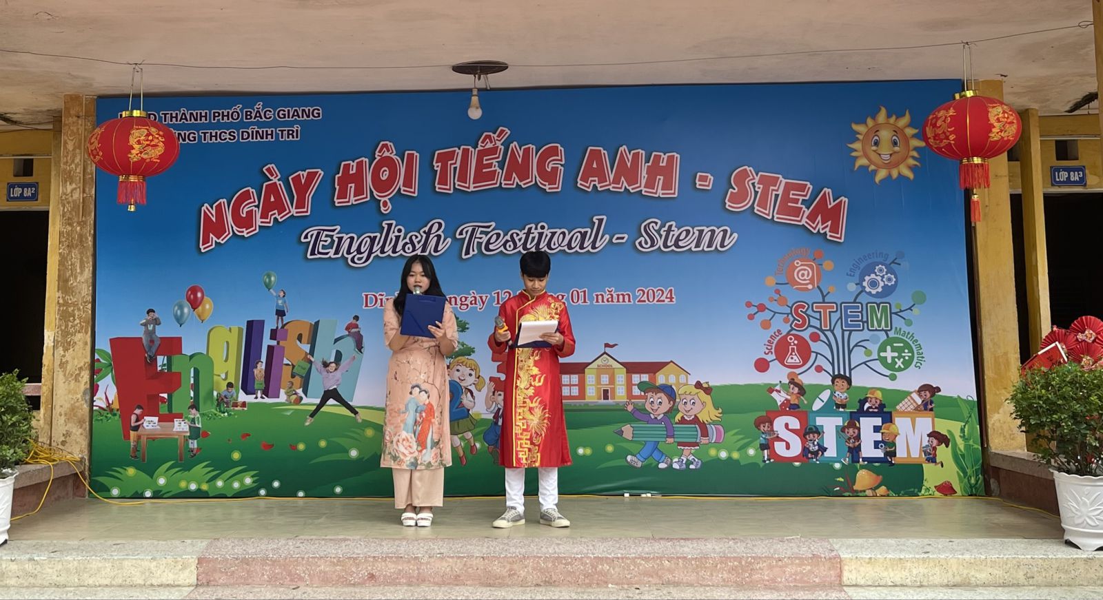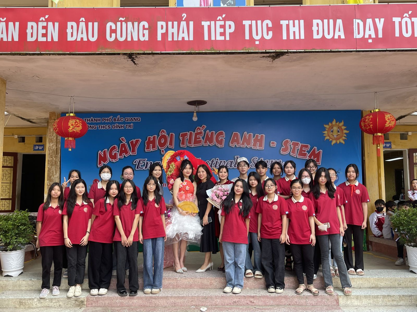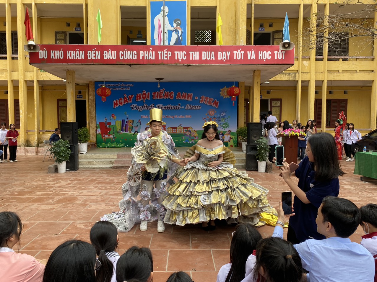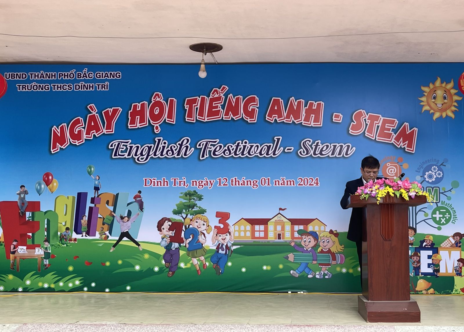 Ngày hội tiếng Anh - STEM - Ngày hội của những sáng tạo và trao giá trị yêu thương đã khép lại trong không khí vui tươi, sôi nổi của các em học sinh cũng như giáo viên và các bậc phụ huynh của trường THCS Dĩnh Trì - Một ngày hội đầy ắp tiếng cười và niềm vui được thể hiện mình qua các trò chơi, các phần thi, các sản phẩm sáng tạo… Ngày hội đã tạo ra cho các em học sân chơi lành mạnh, bổ ích làm phong phú thêm các hoạt động ngoại khoá trong nhà trường, tạo diễn đàn giao lưu để thúc đẩy phong trào học tiếng Anh, làm các sản phẩm STEM.