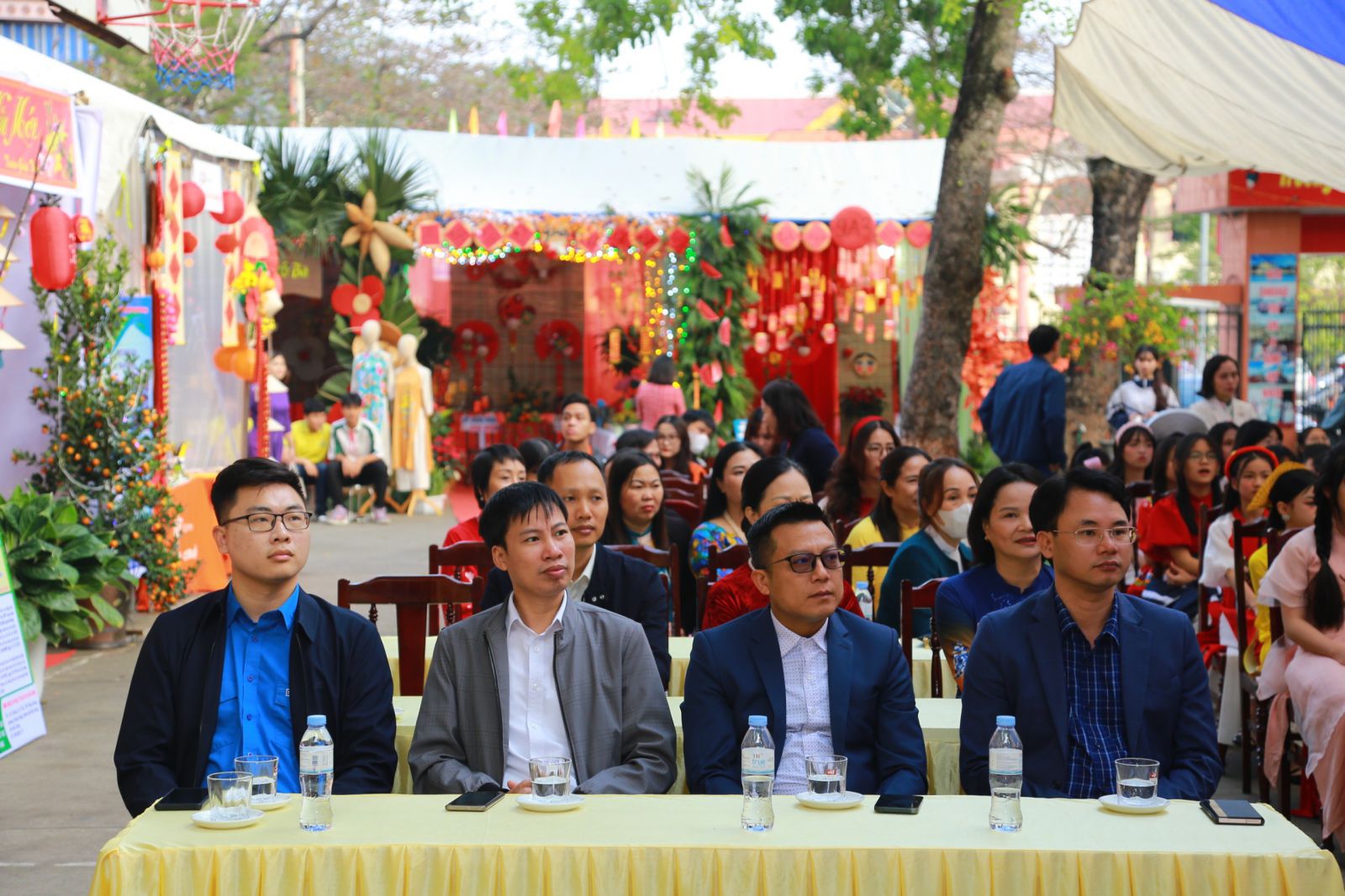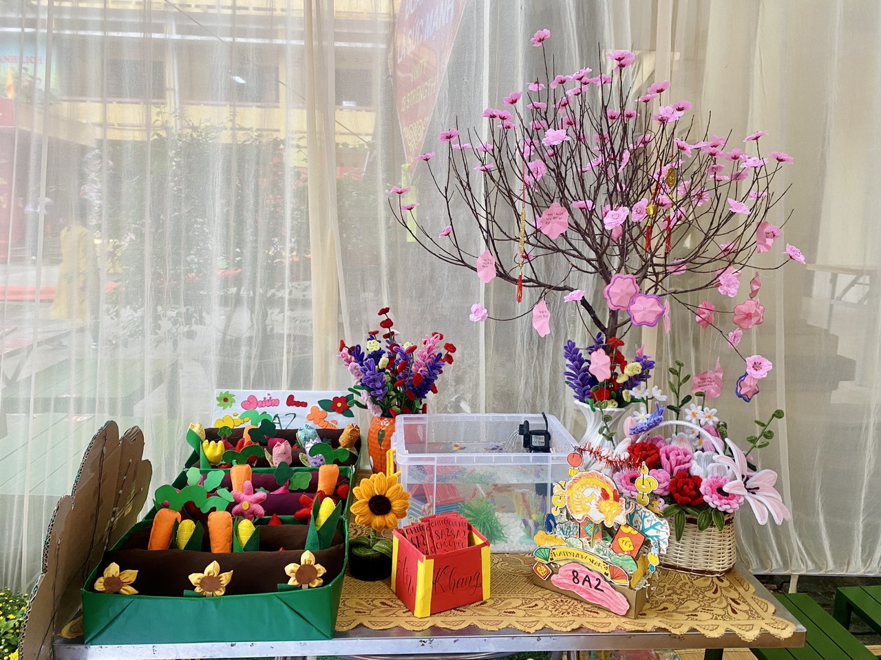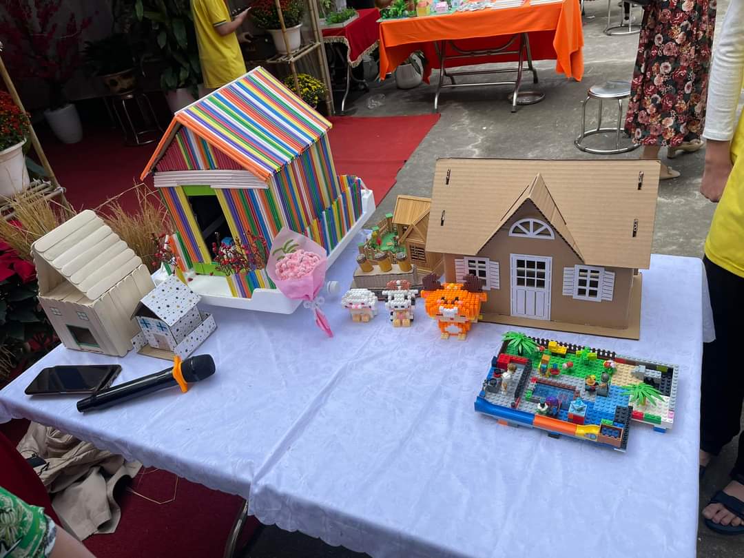 Kết thúc Ngày hội, đại biểu cùng thầy cô trong Ban Giám khảo đã đi thăm quan, chấm điểm các gian hàng trưng bày, trang trí hội trại và sản phẩm STEM của 25 chi đội. Các gian hàng đều được chuẩn bị kì công, trang trí sáng tạo, sắp xếp khoa học theo chủ đề ngày Tết, Chợ xuân và lồng ghép sáng tạo STEM. Với nhiều gam màu đặc sắc, màu xanh của bánh chưng, màu vàng của hoa mai, màu đỏ của hoa đào, câu đối đã mang đến một không khí vui tươi, đầm ấm, đặc biệt là các mặt hàng nông sản như: gạo nếp, đỗ xanh, lá rong, rau xanh các loại, cùng nhiều củ quả, bánh kẹo, … được bày bán tại các gian hàng rất phong phú. Ngoài ra, các học sinh còn được trực tiếp tham gia gói bánh chưng, nặn bánh trôi nước, quấy bánh đúc, … trang trí gian hàng chợ quê, trưng bày trang trí mâm ngũ quả đã tạo nên bầu không khí hào hứng, vui tươi, phấn khởi. Nét đặc sắc là ở các gian hàng đều trưng bày các sản phẩm STEM.