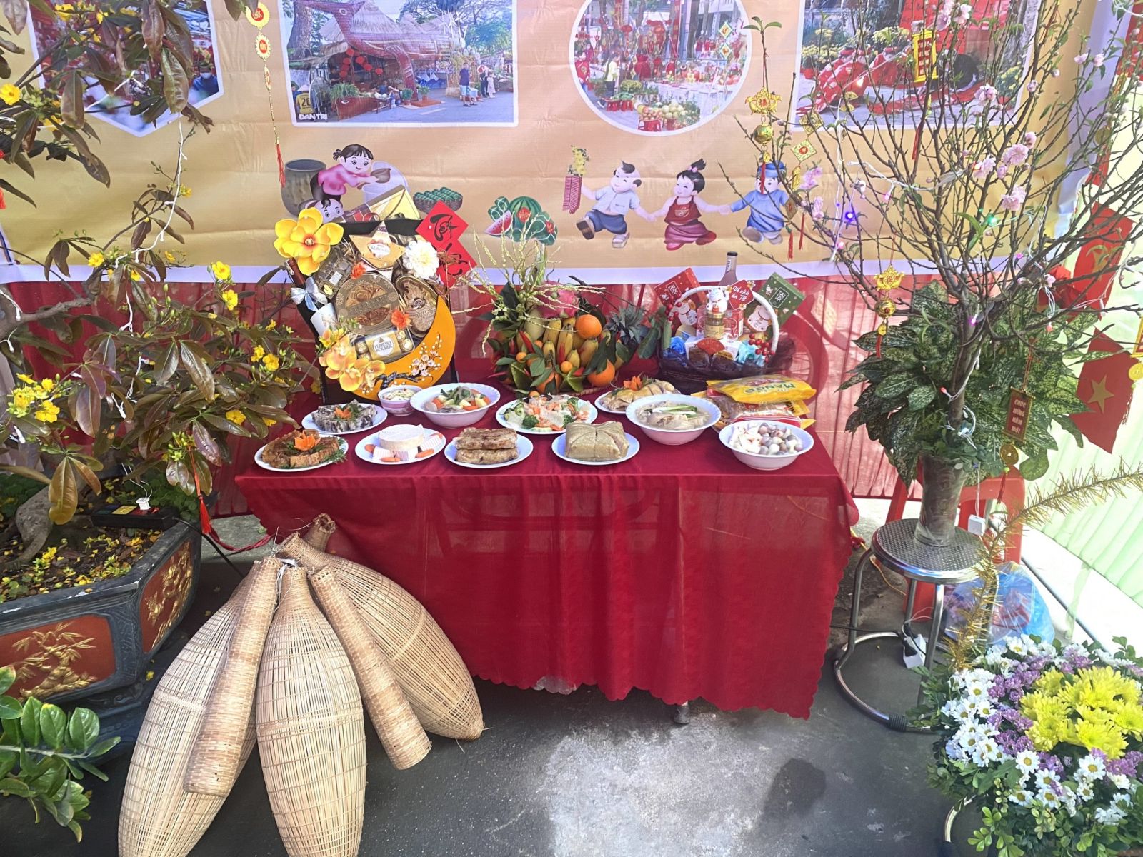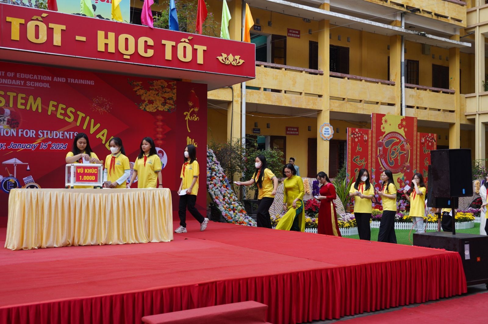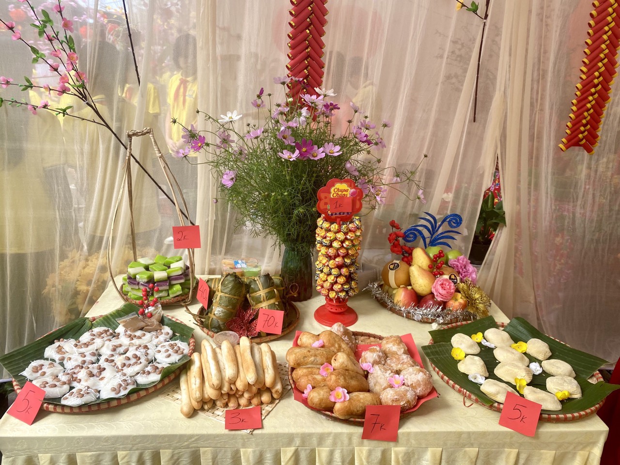 Kết thúc Ngày hội, đại biểu cùng thầy cô trong Ban Giám khảo đã đi thăm quan, chấm điểm các gian hàng trưng bày, trang trí hội trại và sản phẩm STEM của 25 chi đội. Các gian hàng đều được chuẩn bị kì công, trang trí sáng tạo, sắp xếp khoa học theo chủ đề ngày Tết, Chợ xuân và lồng ghép sáng tạo STEM. Với nhiều gam màu đặc sắc, màu xanh của bánh chưng, màu vàng của hoa mai, màu đỏ của hoa đào, câu đối đã mang đến một không khí vui tươi, đầm ấm, đặc biệt là các mặt hàng nông sản như: gạo nếp, đỗ xanh, lá rong, rau xanh các loại, cùng nhiều củ quả, bánh kẹo, … được bày bán tại các gian hàng rất phong phú. Ngoài ra, các học sinh còn được trực tiếp tham gia gói bánh chưng, nặn bánh trôi nước, quấy bánh đúc, … trang trí gian hàng chợ quê, trưng bày trang trí mâm ngũ quả đã tạo nên bầu không khí hào hứng, vui tươi, phấn khởi. Nét đặc sắc là ở các gian hàng đều trưng bày các sản phẩm STEM.