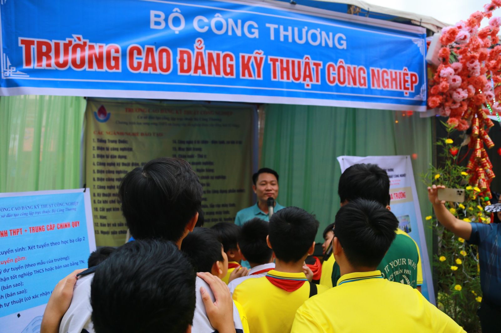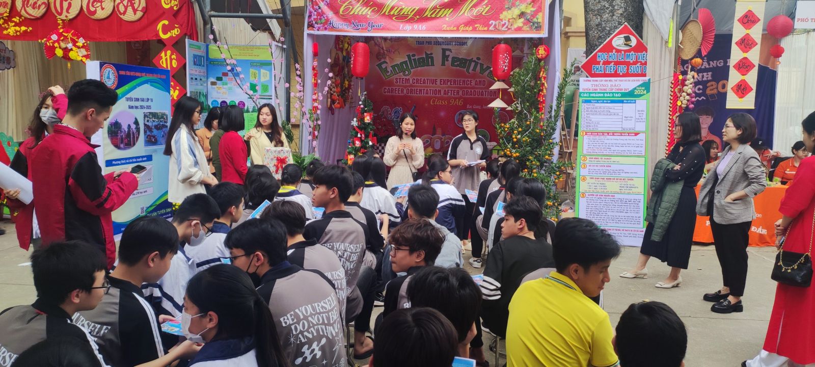 Đặc biệt hơn cả, Ngày hội có thêm các gian hàng trưng bày của các trường: Cao đẳng Kĩ thuật công nghiệp Bắc Giang, Phổ thông cao đẳng FPT, Liên cấp FPT, Trung tâm bồi dưỡng thường xuyên - Ngoại ngữ, Tin học Bắc Giang. Các em còn được lắng nghe những chia sẻ rất chân thành, bổ ích từ các anh chị của trường THPT Ngô Sĩ Liên, trường Trung cấp Văn hóa Thể thao Du lịch Bắc Giang, trường Cao đằng Công nghệ Việt Hàn. Những sản phẩm, những thông tin và những chia sẻ của các trường đã giúp các em học sinh lớp 9 có thêm những định hướng về lựa chọn nghề nghiệp sau khi tốt nghiệp THCS.