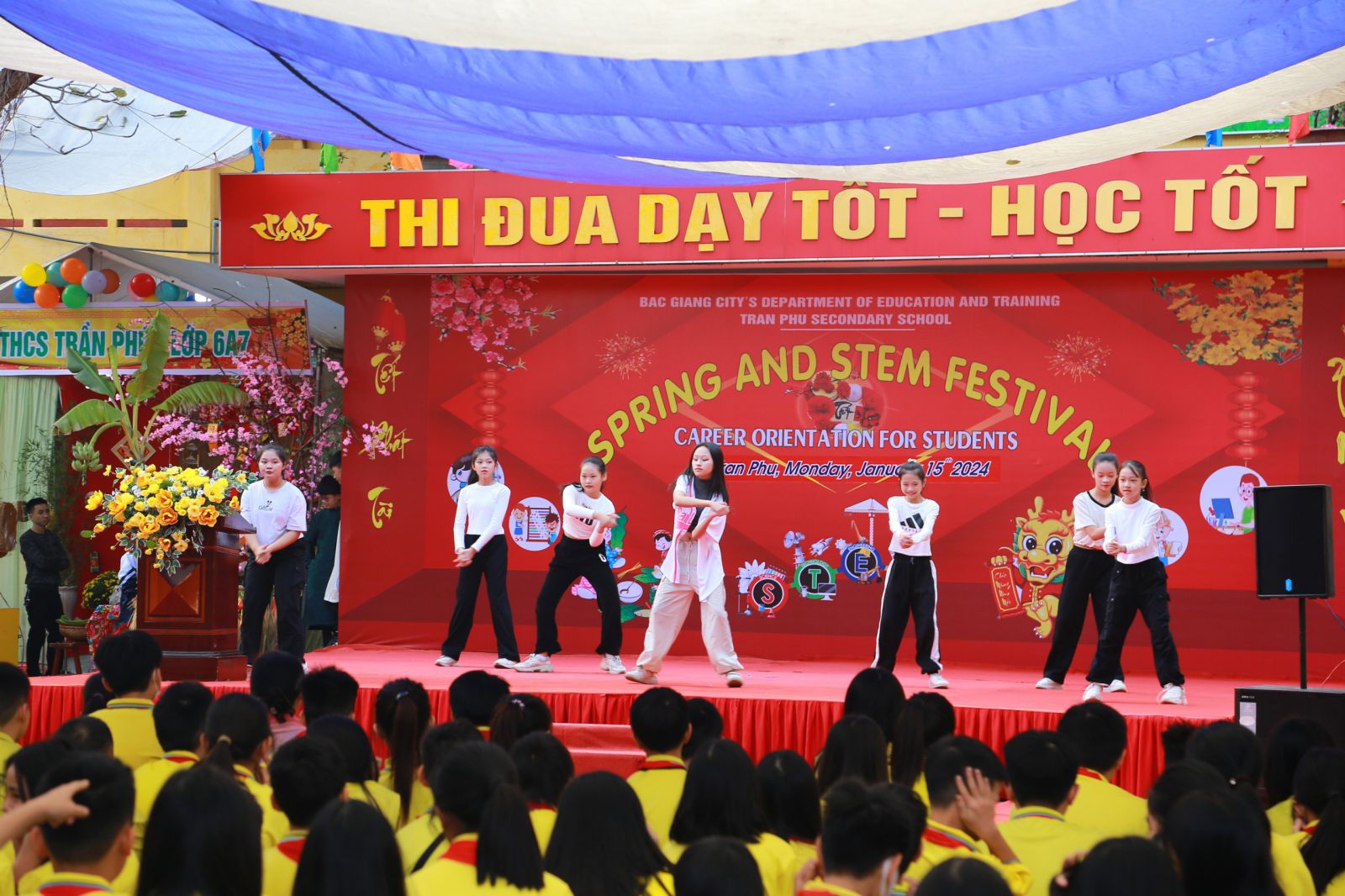 Thực hiện Kế hoạch số 36/KH-GDĐT ngày 30 tháng 8 năm 2023 của phòng GD&ĐT thành phố Bắc Giang về việc triển khai các hoạt động Tiếng Anh năm học 2023-2024; Thực hiện Chương trình công tác Đội và phong trào thiếu nhi năm học 2023-2024 của Thành đoàn Bắc Giang và thực hiện kế hoạch nhiệm vụ năm học 2023-2024 của trường THCS Trần Phú; Nhằm tạo môi trường cho học sinh được nghe, nói tiếng Anh, trao đổi kinh nghiệm trong quá trình học tiếng Anh; Khơi dậy tiềm năng và phát huy tư duy sáng tạo; Giúp học sinh trau dồi kiến thức, rèn luyện kỹ năng, ước mơ trở thành nhà sáng chế trong tương lai, hiểu và định hướng được nghề nghiệp sau tốt nghiệp THCS và trong tương lai. Ngày 15 tháng 1, trường THCS Trần Phú long trọng tổ chức “Ngày hội tiếng Anh, trải nghiệm sáng tạo STEM và định hướng nghề nghiệp sau tốt nghiệp THCS” năm học 2023-2024.