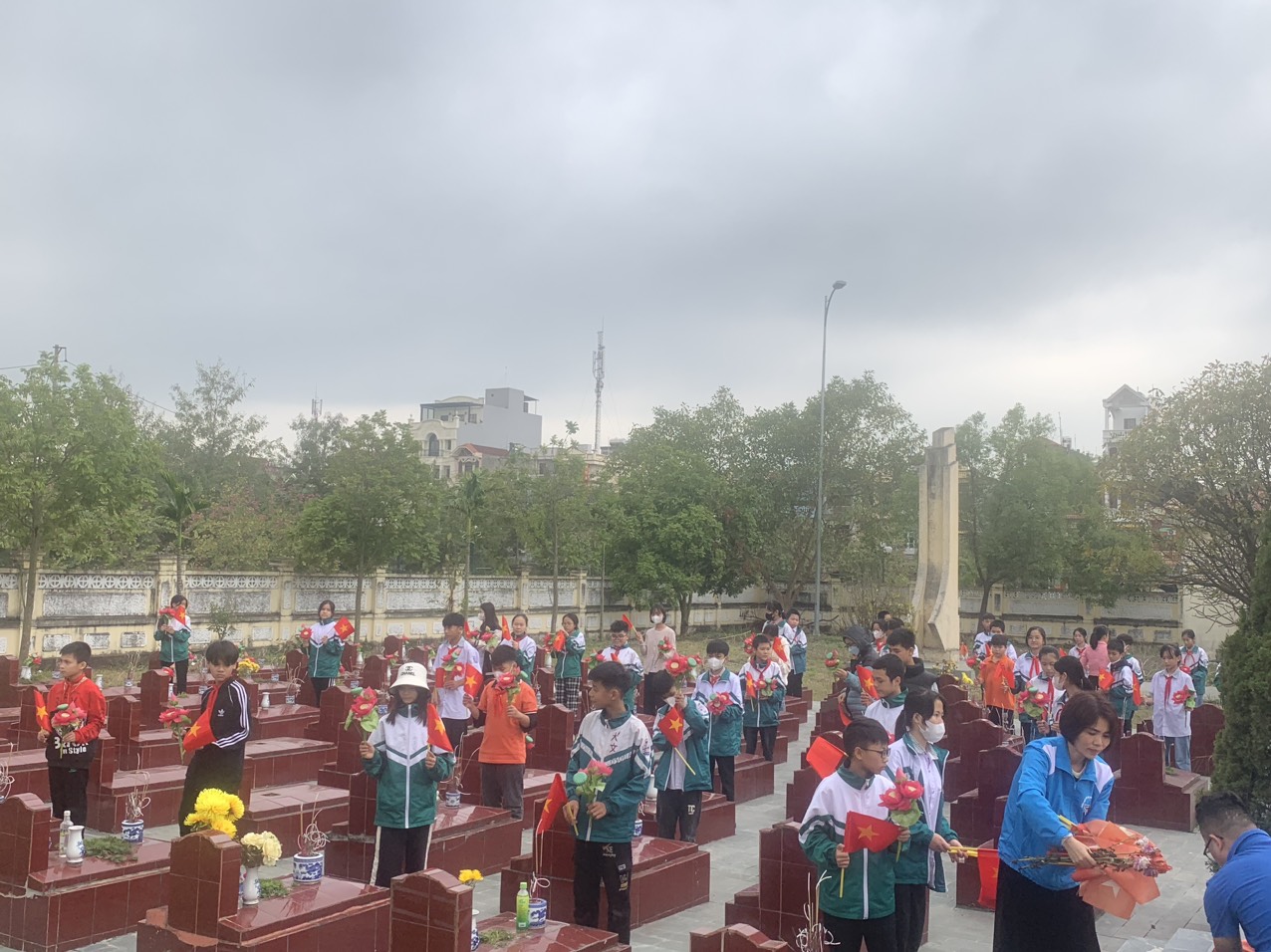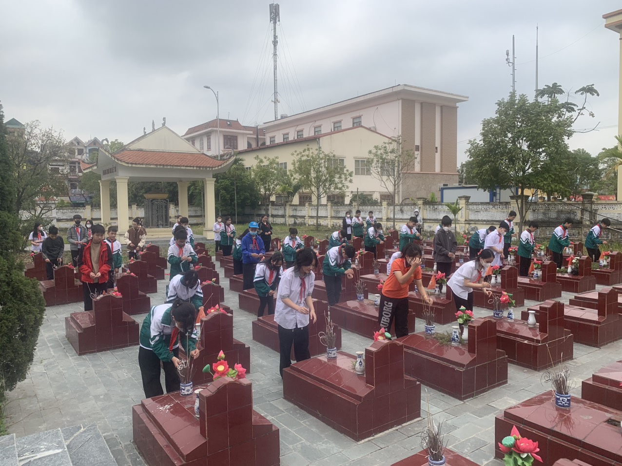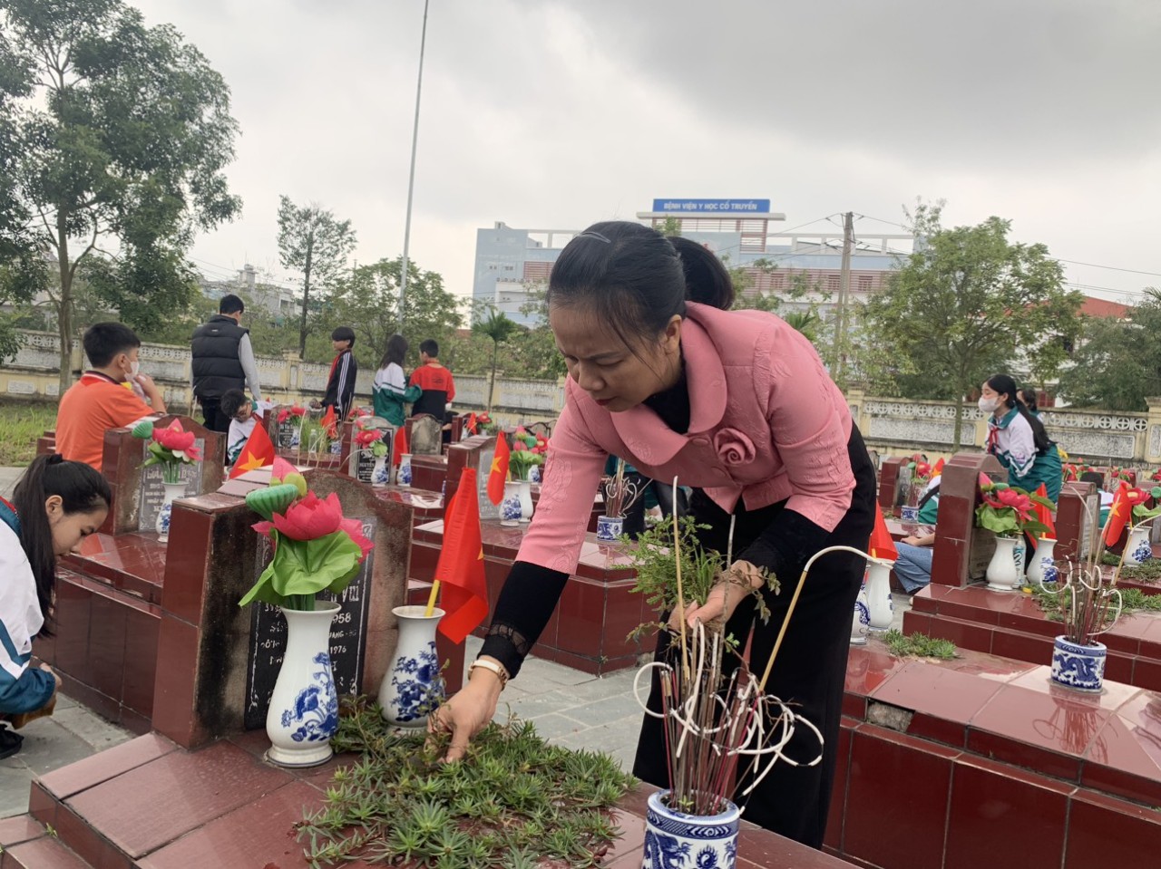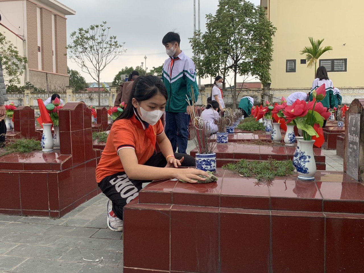 Sau khi ôn lại truyền thống uống nước nhớ nguồn, thày và trò nhà trường với các anh chị đoàn viên đã tích cực dọn vệ sinh toàn bộ khuôn viên nghĩa trang liệt sỹ, thay cờ, hoa tại các bia mộ … tạo cảnh quan môi trường xanh, sạch, đẹp, để lại ấn tượng tốt đẹp cho lãnh đạo, thân nhân liệt sỹ đến viếng nghĩa trang dịp Tết Nguyên Đán