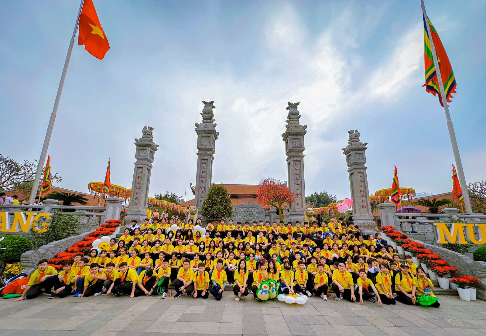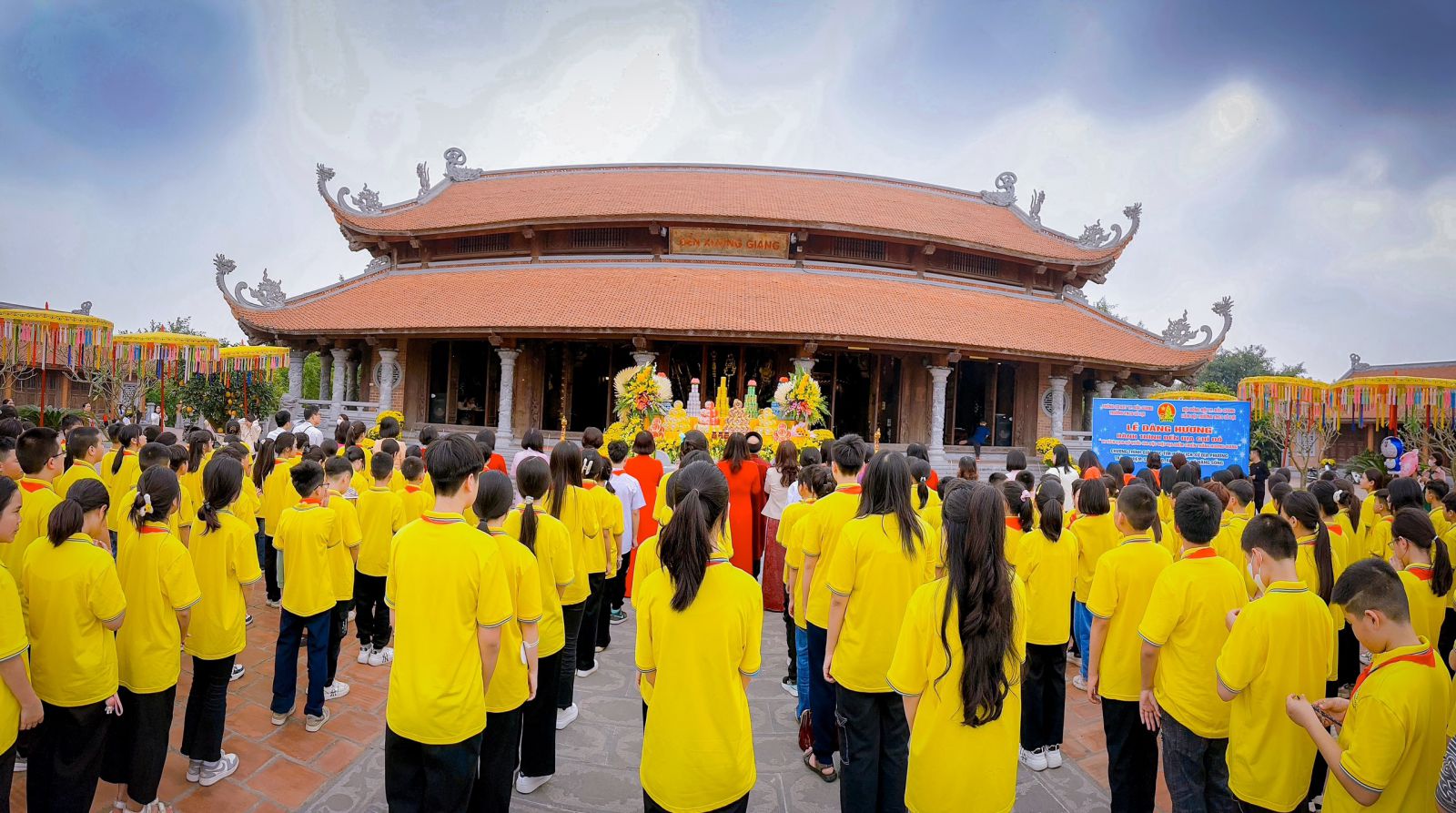 Trước tiên các thầy cô giáo cùng các em học sinh tham gia lễ dâng hương tại khu di tích.