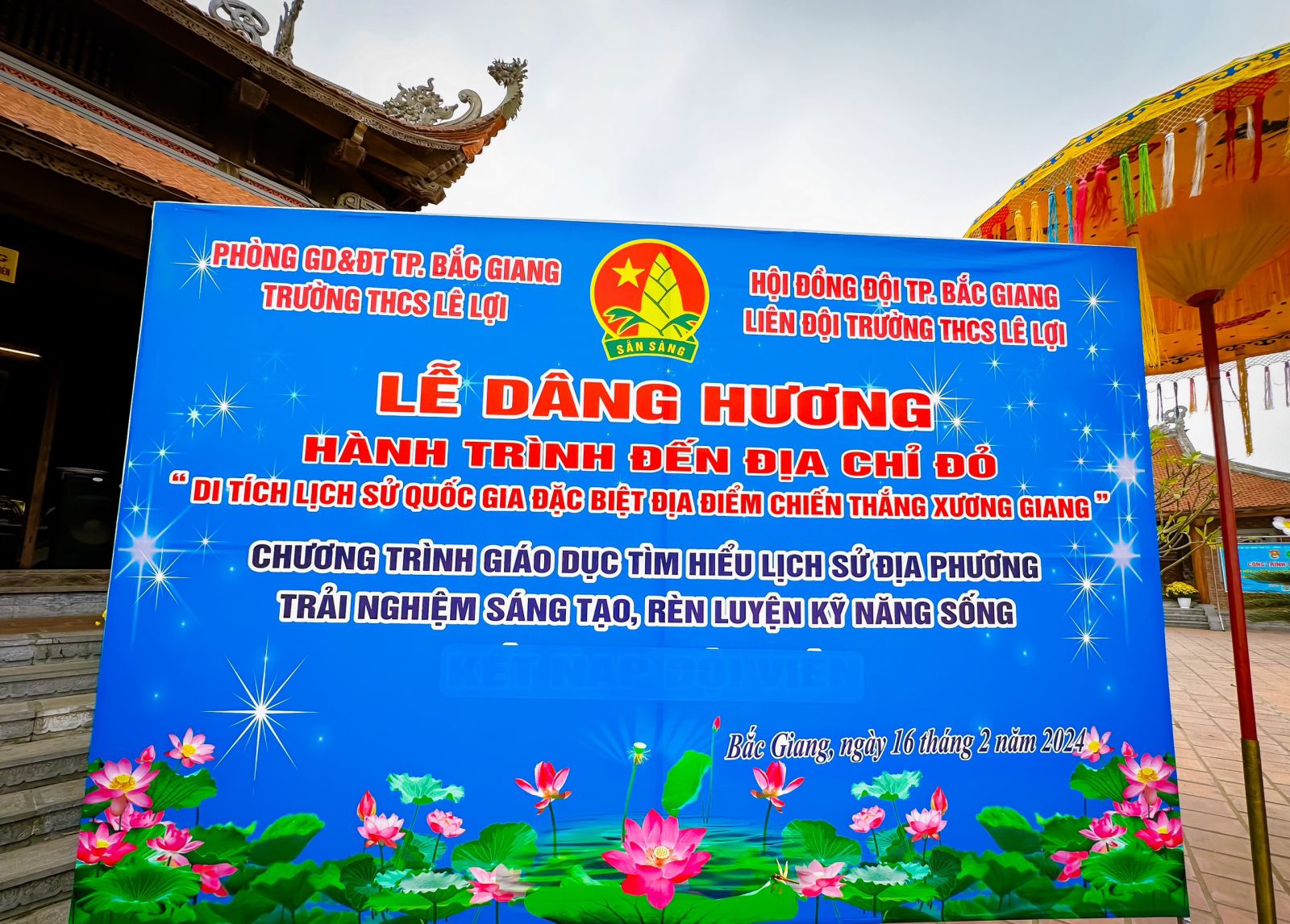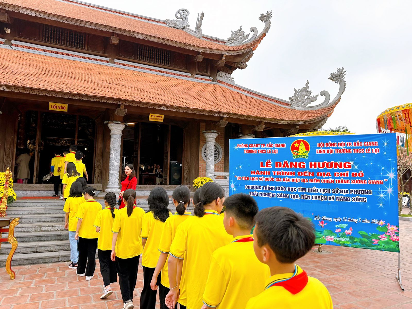 Thực hiện chương trình công tác Đội và phong trào thiếu nhi năm học 2023 - 2024 của Hội đồng Đội thành phố Bắc Giang. Chiều ngày 16/02/2024. Liên đội trường THCS Lê Lợi tổ chức cho các em học sinh tham gia Lễ dâng hương “ Hành trình đến với địa chỉ đỏ- Di tích lịch sử quốc gia đặc biệt địa điểm chiến thắng Xương Giang”. Kết hợp chương trình giáo dục tìm hiểu lịch sử địa phương, trải nghiệm hướng nghiệp – Trải nghiệm sáng tạo, rèn kỹ năng sống cho học sinh, theo chương trình môn học năm 2023-2024.