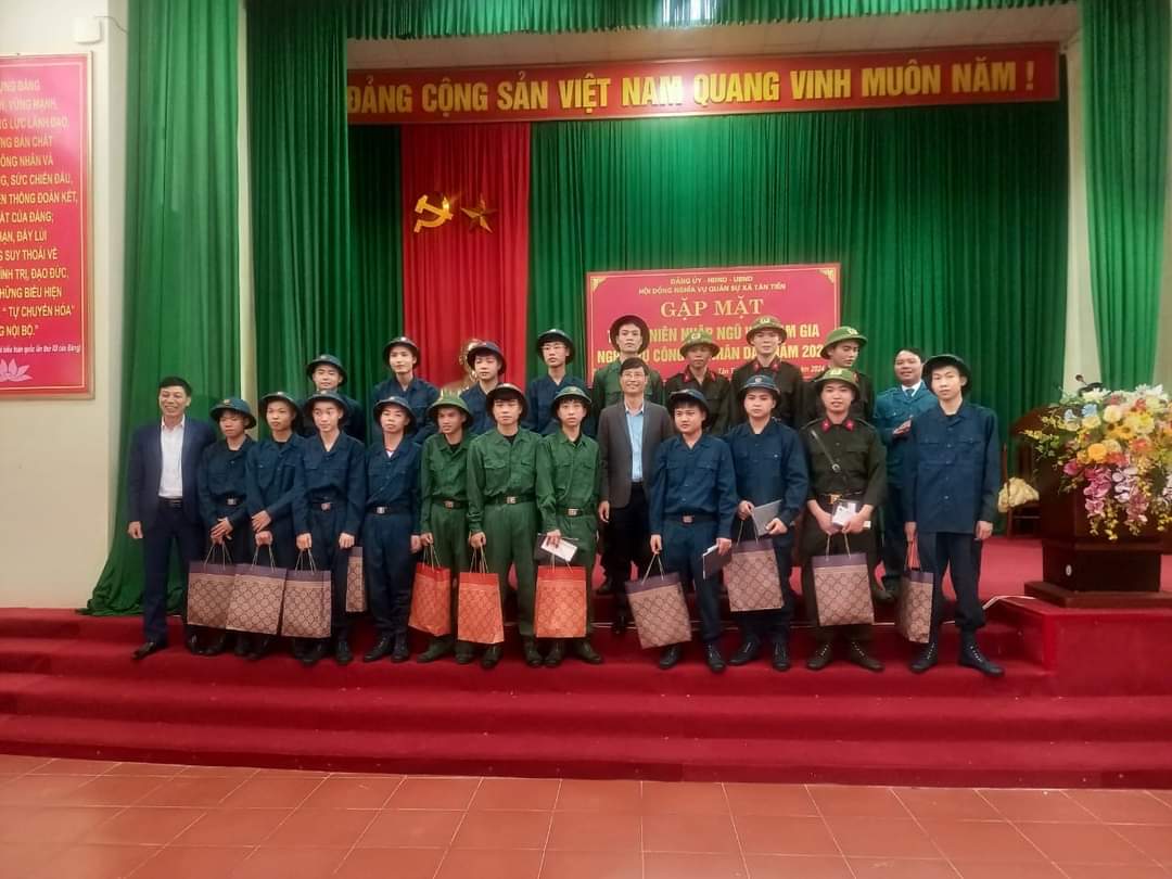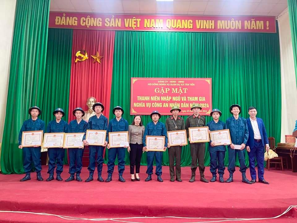 Tại buổi gặp mặt, các đồng chí lãnh đạo Đảng ủy, UBND xã đã phát biểu chúc mừng, động viên các thanh niên phát huy truyền thống anh hùng của quê hương, của lực lượng Quân đội nhân dân và Công an nhân dân, công bố quyết định chỉ tiêu giao quân và lệnh gọi công dân nhập ngũ năm 2024; đồng thời tặng quà và động viên 20 thanh niên trước khi lên đường nhập ngũ và thực hiện nghĩa vụ công an nhân dân cần chấp hành nghiêm túc kỷ luật quân đội, công an, hoàn thành tốt nhiệm vụ được giao; tích cực học tập, tu dưỡng, rèn luyện, phấn đấu trở thành những quân nhân tốt, phát huy truyền thống xã Tân Tiến anh hùng.