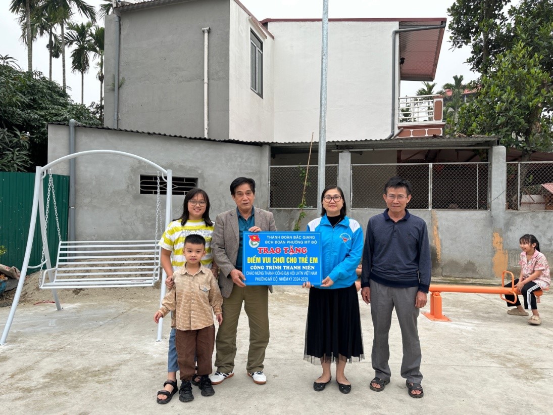Thiết thực chào mừng kỷ niệm 93 năm ngày thành lập Đoàn TNCS Hồ Chí Minh (26/3/1931-26/3/2024); Chào mừng thành công Đại hội Hội LHTN Việt Nam phường Mỹ Độ nhiệm kỳ 2024-2029; Chào mừng Đại hội Hội LHTN Việt Nam thành phố Bắc Giang lần thứ VI, nhiệm kỳ 2024-2029. Chiều ngày 13/3, Đoàn Thanh niên phường Mỹ Độ tổ chức trao tặng công trình thanh niên “Điểm vui chơi cho trẻ em” tại sân ao bổ túc TDP số 2.
