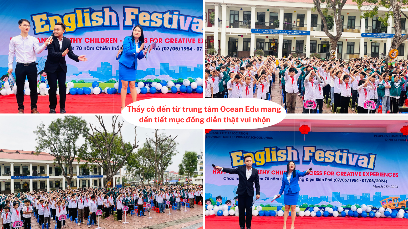 Sau phần giao lưu Tiếng anh với các thầy cô Trung tâm Ocean Edu các bạn học sinh được trải nghiệm ngày hội với các các khu vực: phần thi Rung chuông vàng của khối 5; Góc Tiếng Anh của khối 3; 06 phòng Tiếng anh của khối 4 và góc Thiếu nhi vui khỏe được diễn ra vô cùng sôi nổi và hấp dẫn.