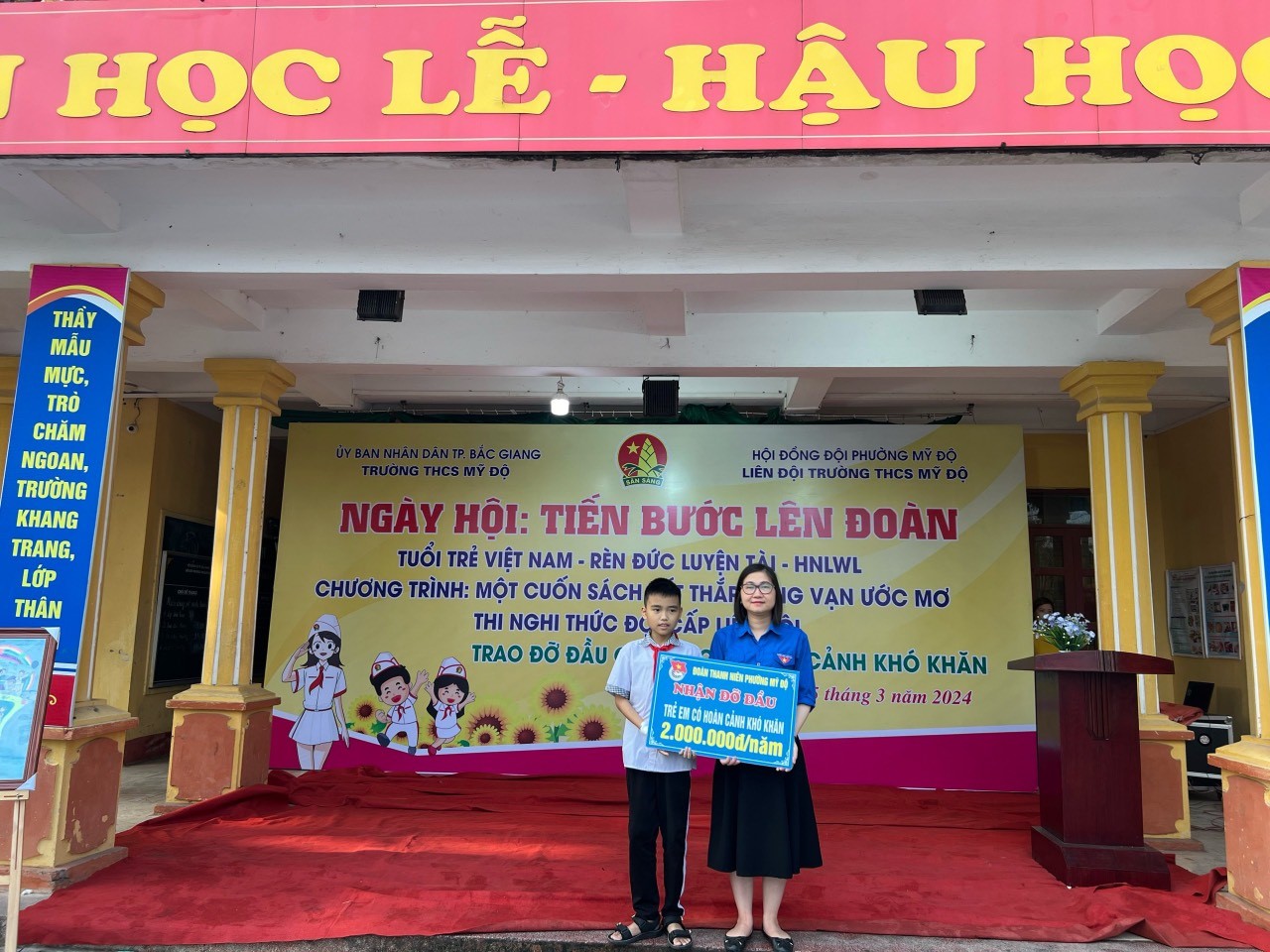 Để từng bước phát huy và lan tỏa những hành động đẹp tới mọi người, BCH Đoàn phường đã nhận đỡ đầu cho em Đoàn Anh Quốc, 12 tuổi, Tổ dân phố số 01 với số tiền trợ cấp là 2.000.000/năm. Em Đoàn Anh Quốc được sinh ra và lớn lên trong một gia đình có hoàn cảnh khó khăn, có 2 anh em và cả 2 anh em đều bị mắc bệnh hiểm nghèo; bố mẹ làm công nhân ở khu công nghiệp. Hàng tháng, bà nội phải đưa 2 anh em đi Viện huyết học Trung Ương để truyền máu và khám bệnh. Do vậy, cũng ảnh hưởng ít nhiều đến học tập, nhưng 2 anh em đều học tập rất chăm chỉ, ngoan ngoãn, học giỏi. Ngoài việc đi học, em chỉ biết phụ giúp việc nhà như: Nhặt rau, rửa bát, quét nhà..... để đở đần một phần công việc nhà cho bà nội.