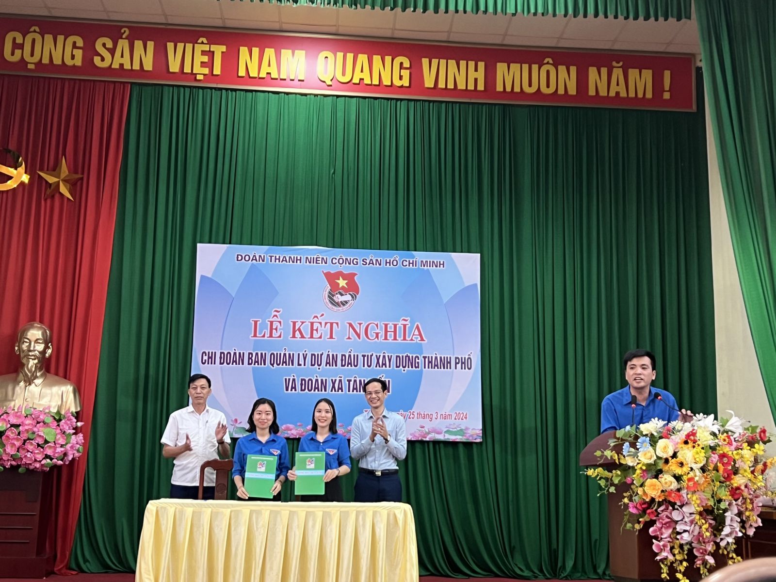Thực hiện chương trình công tác đoàn và phong trào TTN năm 2024, Hưởng ứng các hoạt động tháng thanh niên; Chào mừng kỷ niệm 93 năm Ngày thành lập Đoàn TNCS Hồ Chí Minh (26/3/1931-26/3/2024); Chào mừng thành công Đại hội đại biểu Hội LHTN Việt Nam Thành phố Bắc Giang lần thứ VI, nhiệm kỳ 2024-2029. Chiều ngày 25/3/2024 được sự nhất trí của BTV Thành đoàn, Thường trực Đảng ủy các đơn vị, Đoàn xã Tân Tiến và Chi đoàn Ban QLDA ĐTXD thành phố đã tổ chức Lễ kết nghĩa Chào mừng kỷ niệm 93 năm Ngày thành lập Đoàn TNCS Hồ Chí Minh.