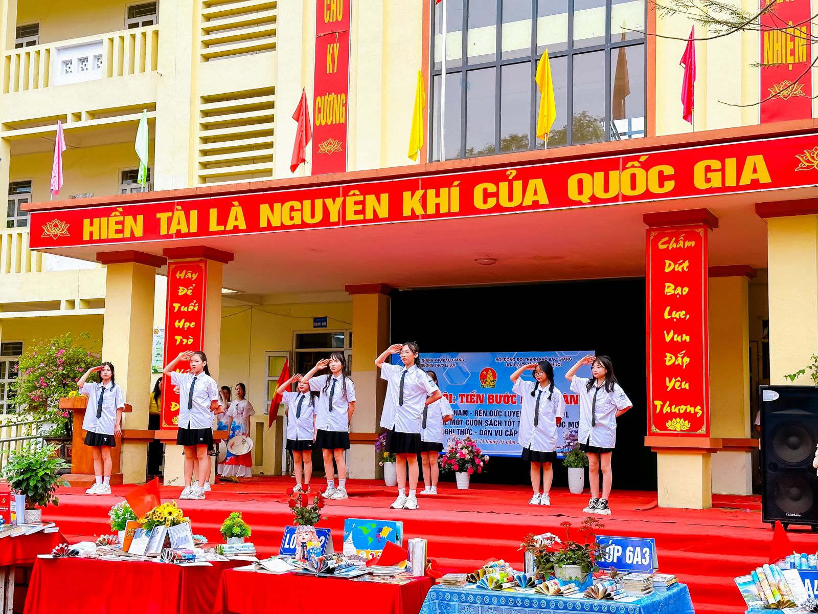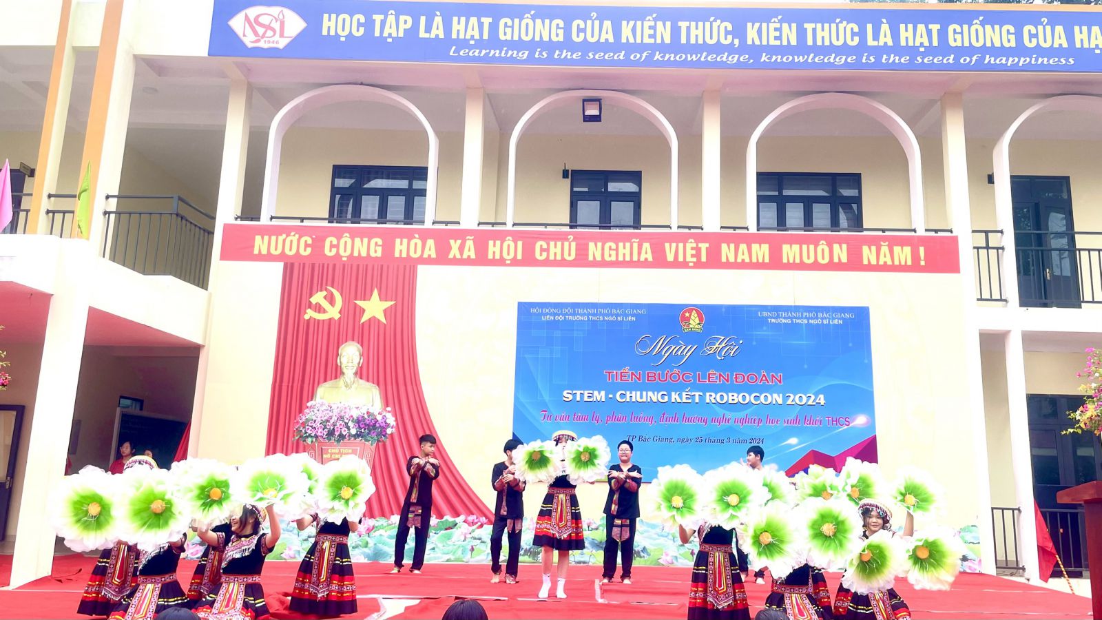 Mở đầu chương trình là những tiết mục văn nghệ chào mừng vô cùng đặc sắc. Những lời ca bay bổng cùng những màn múa đầy sắc màu đến từ các bạn học sinh đã làm không khí của ngày hội thật rộn rã, tươi vui.