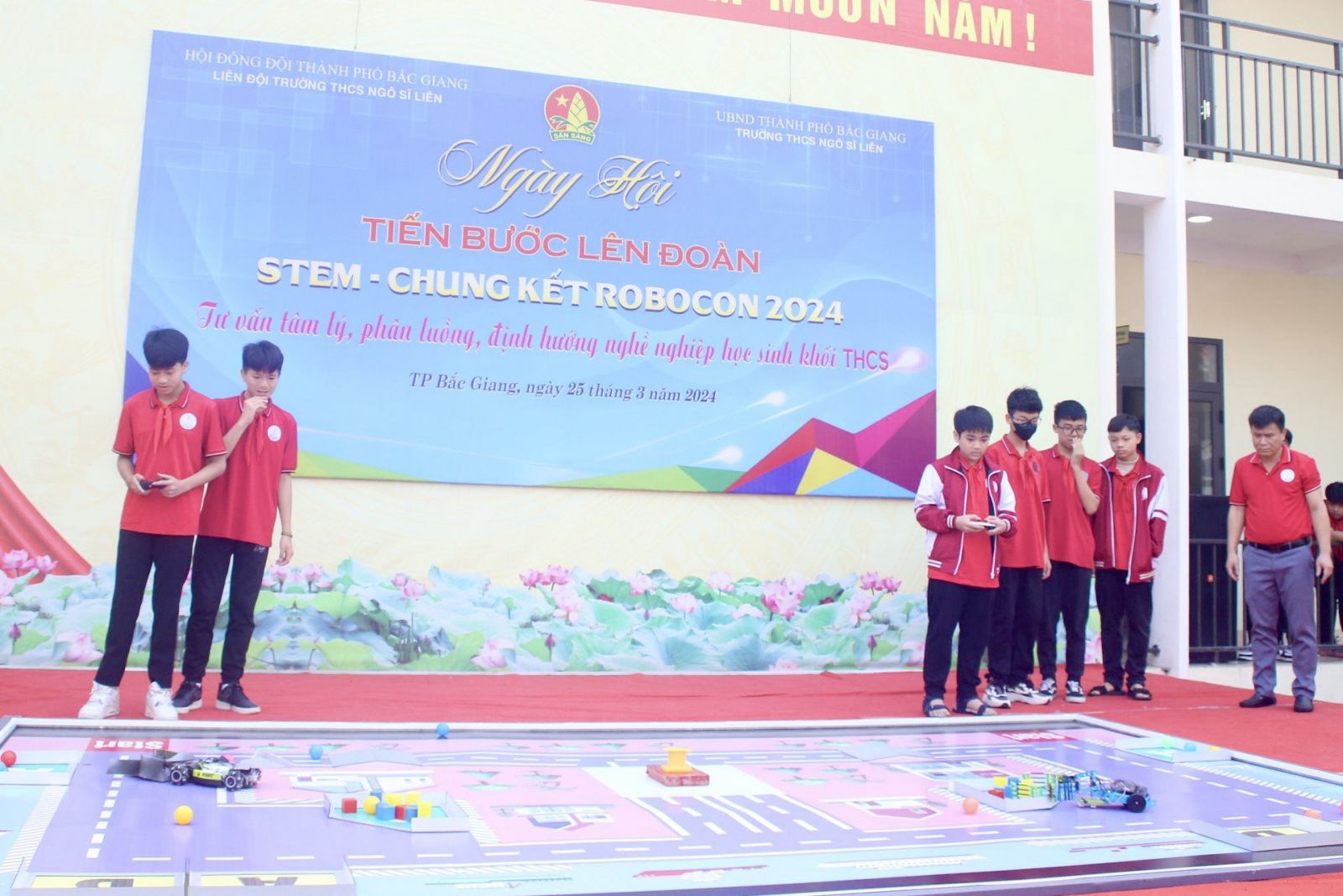 Trong ngày hội, Liên đội các trường còn tổ chức Cuộc thi chung kết Robocon năm học 2023 – 2024 cho các em học sinh. Đây là sân chơi vô cùng lý tưởng và thu hút, hỗ trợ rèn luyện nhiều kỹ năng cho các em. Cuộc thi Robocon 2024 có chủ đề “Người vận chuyển tài ba”. Cuộc thi đã thực sự mang đến cho các khán giả những giây phút gay cấn, hồi hộp và bùng nổ.