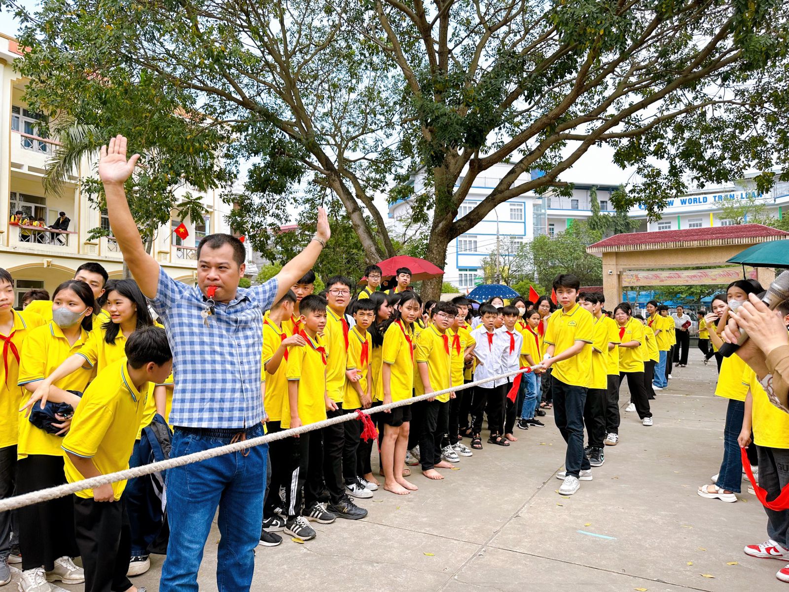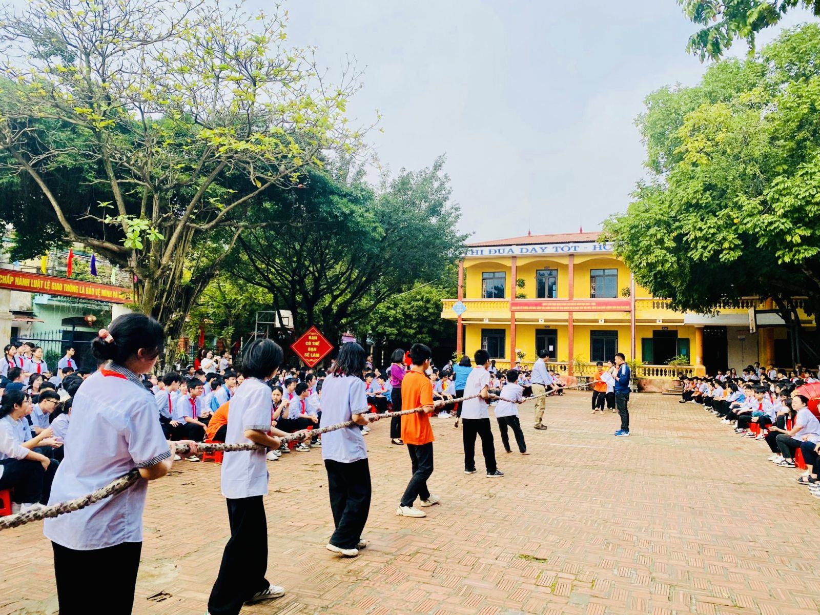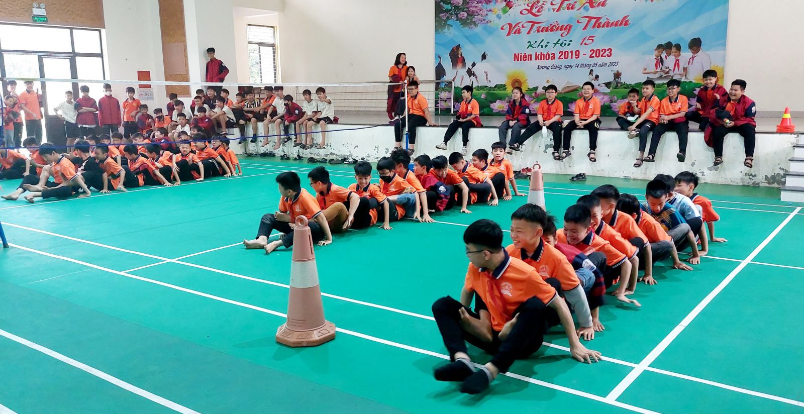 Sau phần lễ là phần hội được các em học sinh của các liên đội sôi nổi chào đón. Phần hội gồm các trò chơi dân gian như: thi nhảy bao bố, thi đập niêu, thi đua thuyền trên cạn, thi kéo co,...