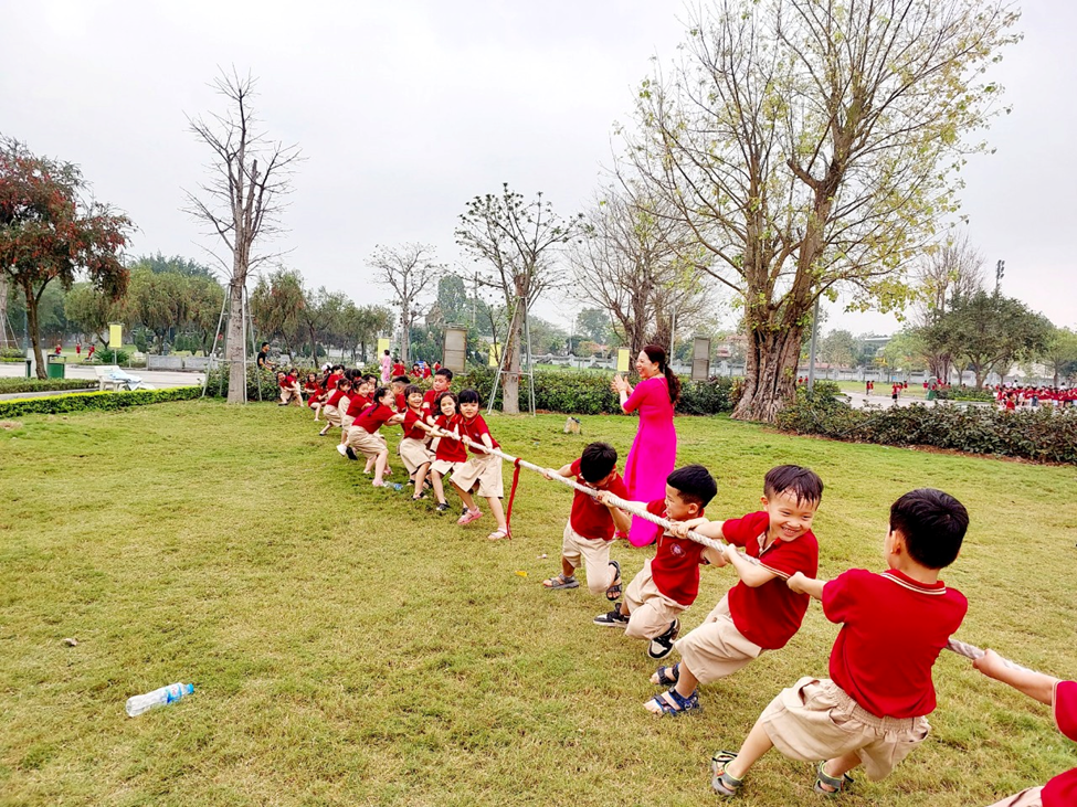 Sau khi học tập xong tiết học, học sinh di chuyển đến các địa điểm để tham gia một số trò chơi dân gian. Tại đây, các em được tham gia chơi một số trò chơi vô cùng thú vị như: Kéo co, nhảy bao bố, tham gia giao lưu trả lời câu hỏi, …
