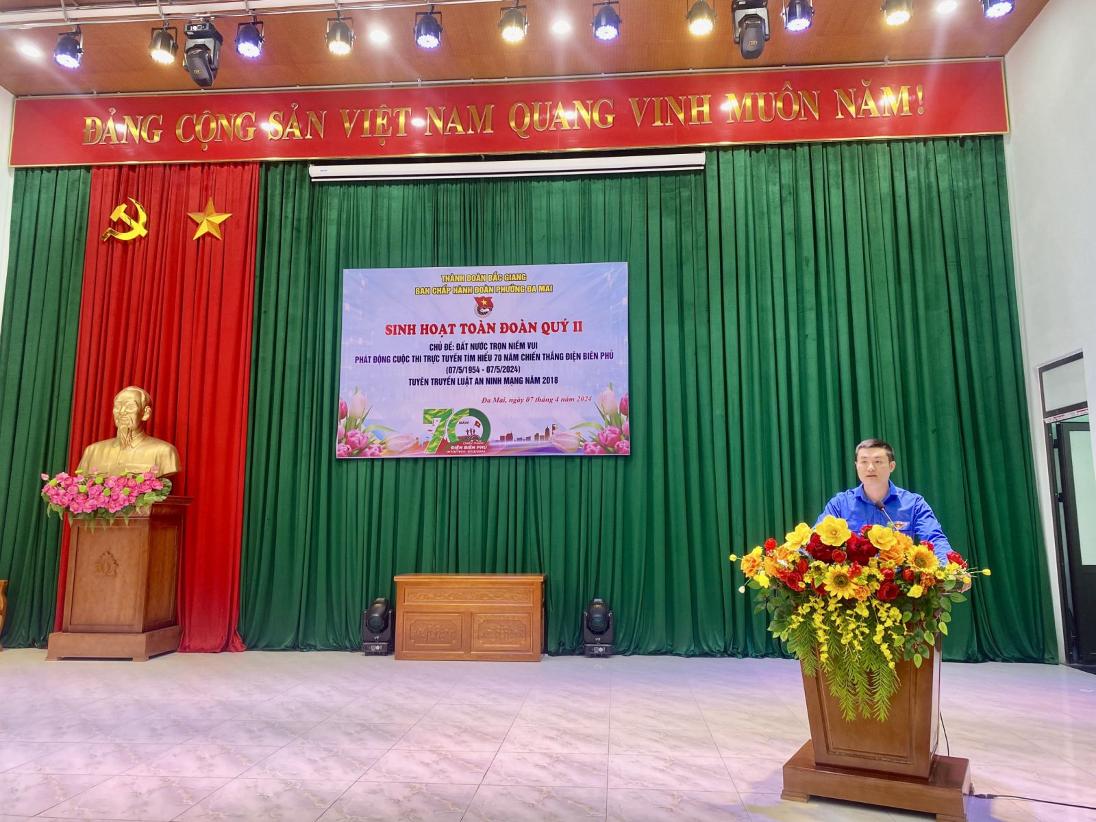 Tại buổi sinh hoạt, đoàn viên trong toàn phường được ôn lại lịch sử hào hùng của dân tộc về chiến thắng Điện Biên Phủ “Lừng lẫy năm châu – Trấn động địa cầu”; Nghe chuyện về tấm gương đạo đức, phong cách Hồ Chí Minh; Tuyên truyền về Luật an ninh mạng năm 2018; Triển khai các chi đoàn đăng ký Chi đoàn “ 3 chủ động” năm 2024.
