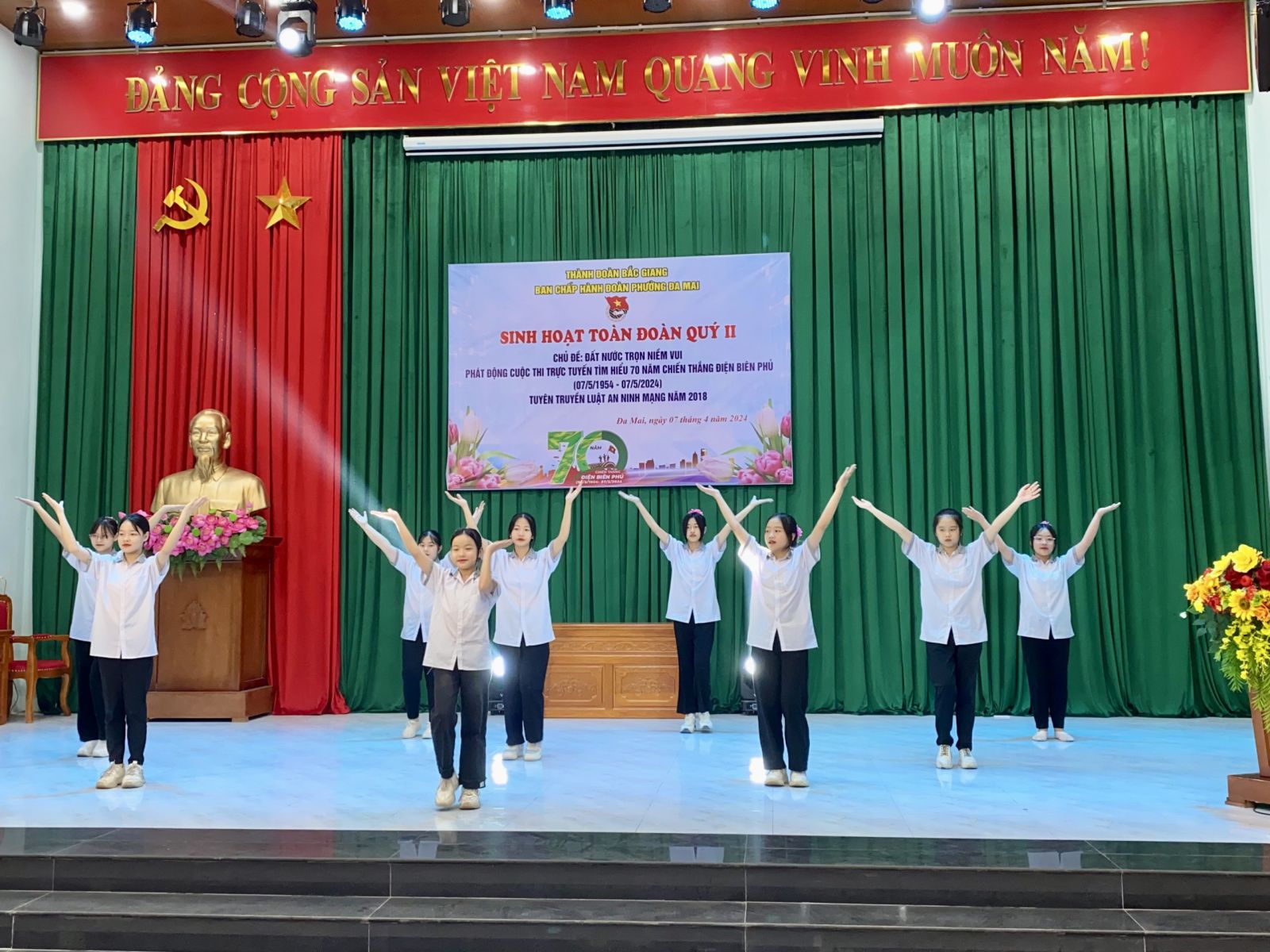 Đây là đợt sinh hoạt chính trị sâu rộng giúp đoàn viên thanh niên nhận thức sâu sắc về chiến thắng hào hùng Điện Biên Phủ của dân tộc; Thân thế, cuộc đời, sự nghiệp cách mạng vẻ vang của Chủ tịch Hồ Chí Minh và những cống hiến vĩ đại của Người đối với sự nghiệp cách mạng của toàn dân tộc; Tạo cơ hội cho đoàn viên thanh niên thể hiện lòng tôn kính và lòng biết ơn đối với Bác Hồ; Tiếp tục đẩy mạnh, nâng cao hiệu quả việc học tập và làm theo lời Bác. Buổi sinh hoạt với sự tham gia của 10 chi đoàn (hơn 80 đoàn viên thanh niên) với nhiều nội dung phong phú, đa dạng thu hút sự tham gia của đông đảo đoàn viên thanh niên trong toàn phường.