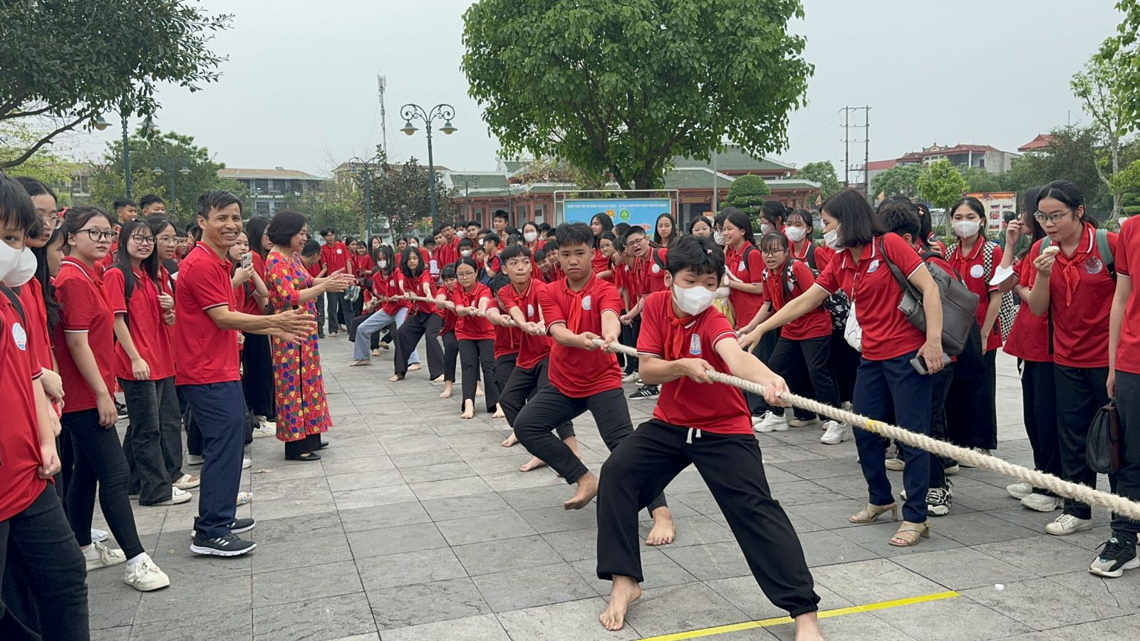 Cuối chương trình, các bạn đội viên của các chi đội cùng nhau thi tài trong cuộc thi Nghi thức Đội năm 2023-2024 và cuộc thi kéo co vô cùng sôi động.