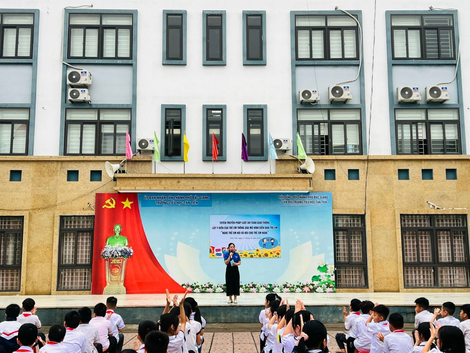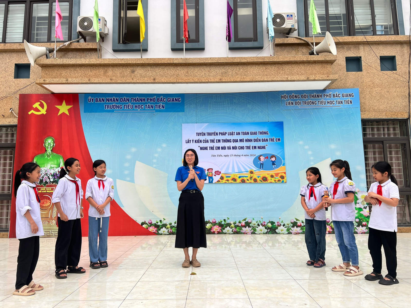 Nhằm tạo sân chơi bổ ích cho thiếu nhi; trang bị những kiến thức, kỹ năng cần thiết về an toàn giao thông, công tác bảo vệ, chăm sóc trẻ em. Sáng ngày 15/4/2024, Liên đội Trường Tiểu học Tân Tiến tổ chức Tuyên truyền Pháp luật an toàn giao thông. Lấy ý kiến trẻ em thông qua mô hình Diễn đàn trẻ em “Nghe trẻ em nói và nói trẻ em nghe” năm học 2023- 2024.