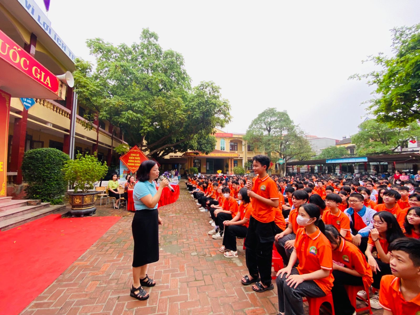 Tham gia buổi hoạt động ngoại khóa có các đồng chí cán bộ quản lý nhà trường cùng toàn thể các thày cô giáo và gần 800 em học sinh trong toàn trường.