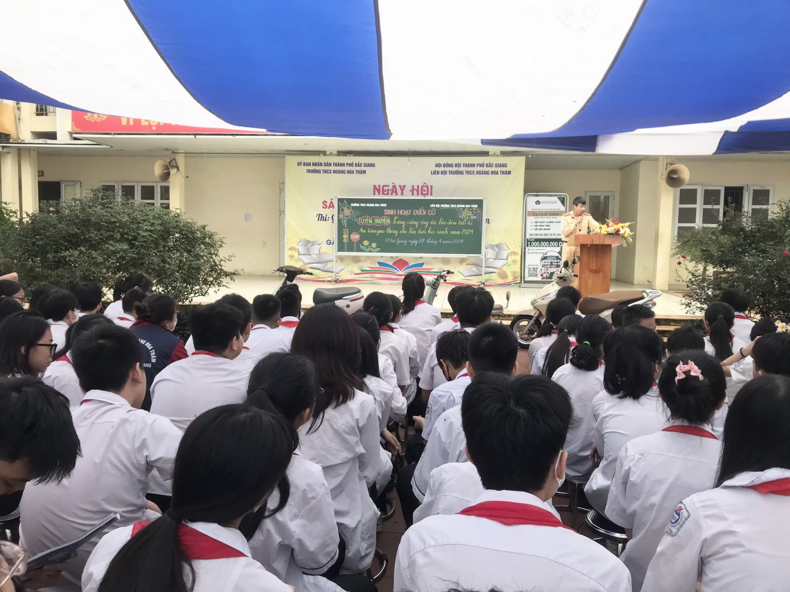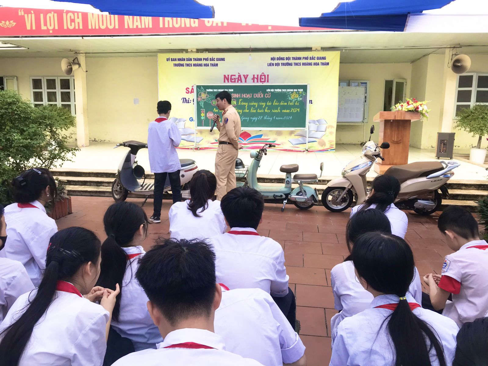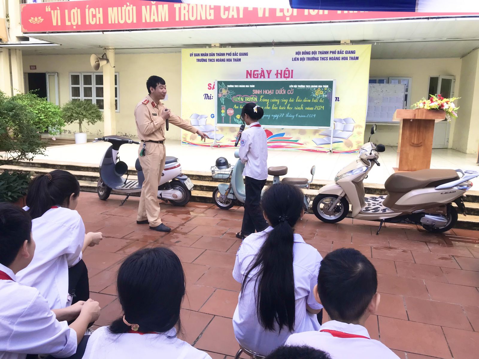 Ngày 22/4/2024 trường THCS Hoàng Hoa Thám phối hợp với Công an thành phố Bắc Giang tổ chức buổi tuyên truyền phổ biến giáo dục pháp luật, tăng cường công tác bảo đảm trật tự, an toàn giao thông cho thầy và trò nhà trường THCS Hoàng Hoa Thám.
