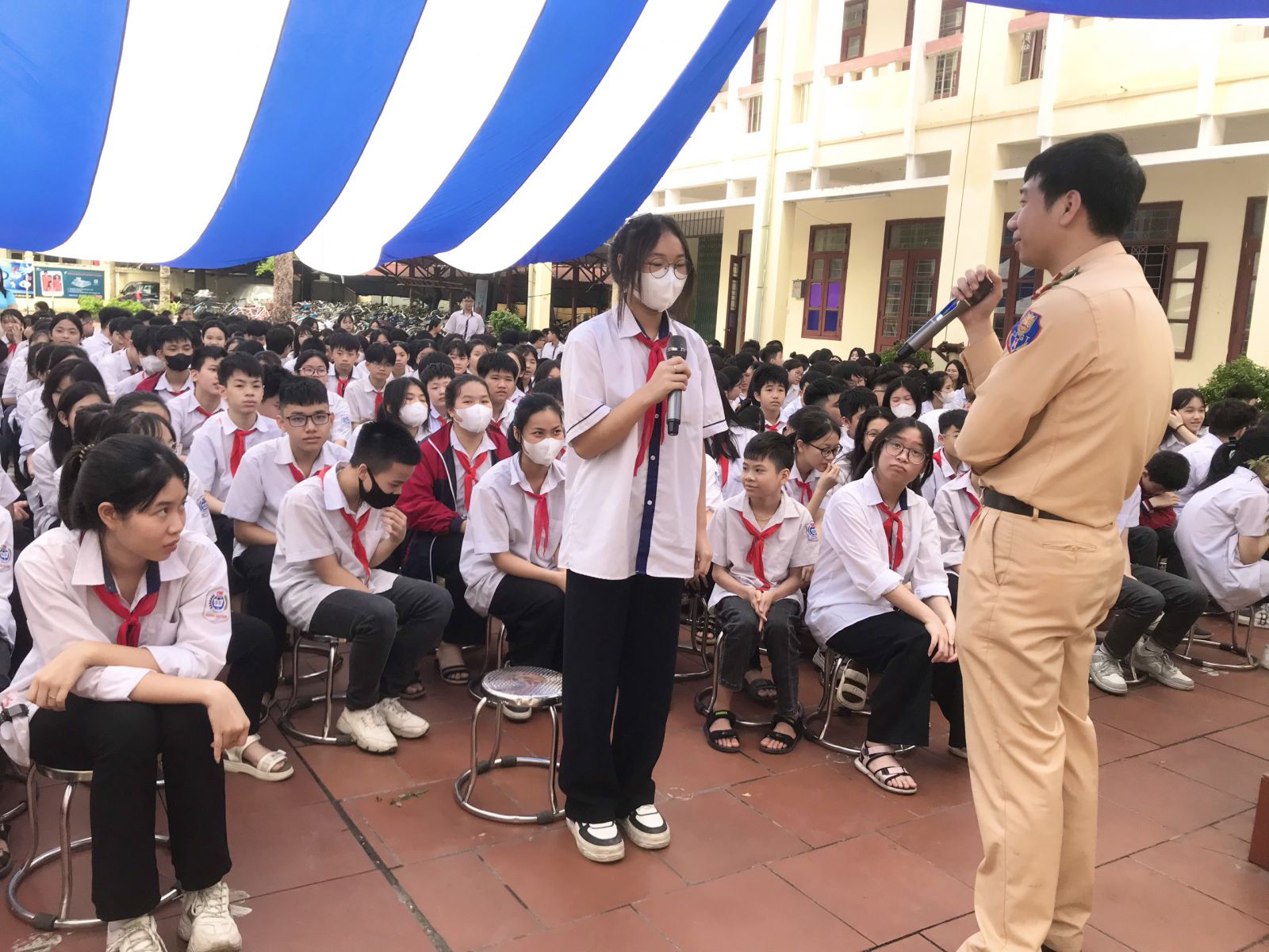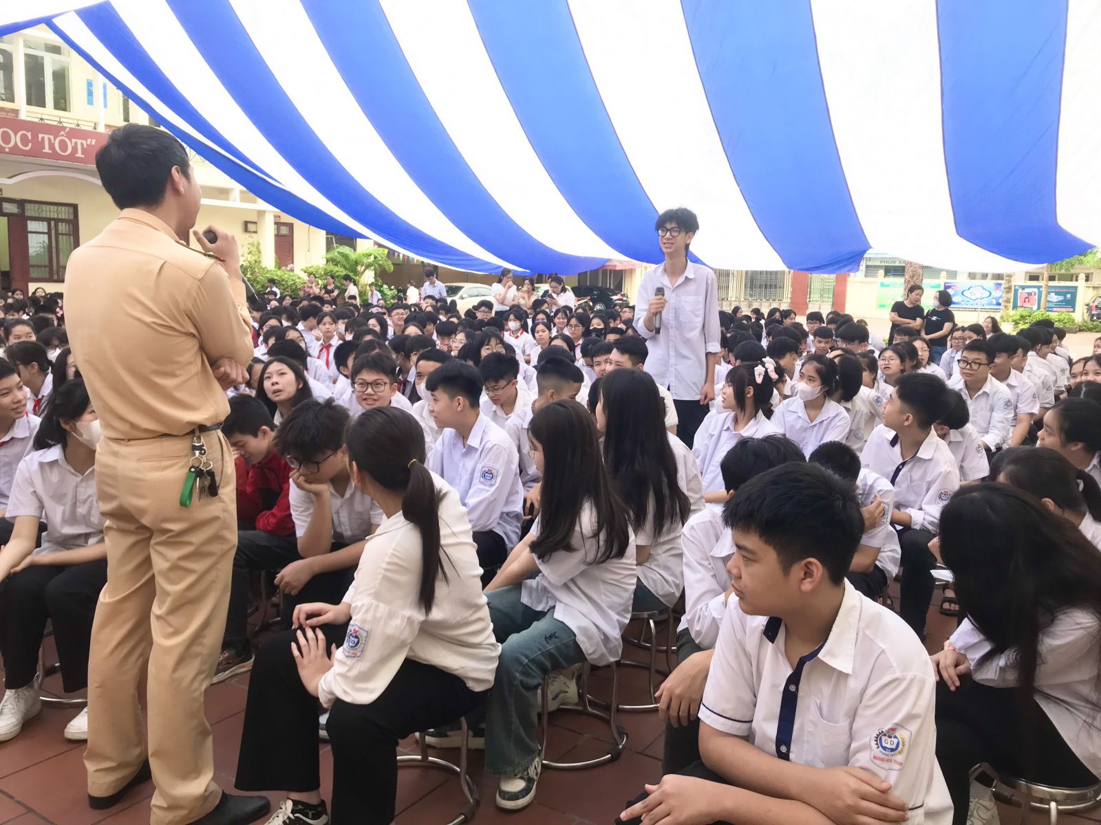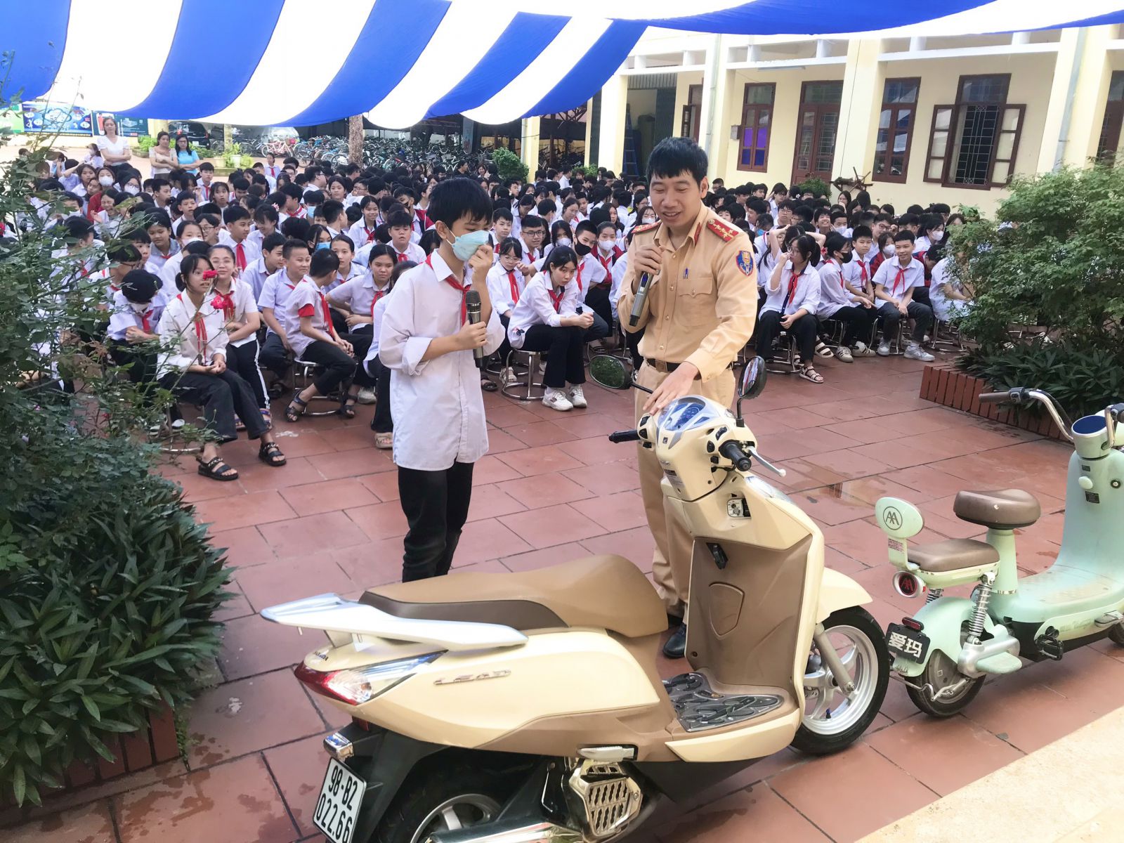 Trả lời các câu hỏi mà đồng chí cán bộ CSGT đưa ra, các em học sinh đã nhận thức rõ những vấn đề tồn tại hiện nay như nhiều người tham gia giao thông chưa đội mũ bảo hiểm hay tuân thủ tín hiệu đèn giao thông; Hay tình trạng nhiều em học sinh chưa đủ tuổi nhưng vẫn điều khiển xe máy điện khi tham gia giao thông; tình trạng các em chở hai, chở ba người trên xe đạp điện hay xe máy điện… gây mất ATGT, gây nguy hiểm cho chính mình và cho những người xung quanh khi tham gia giao thông.