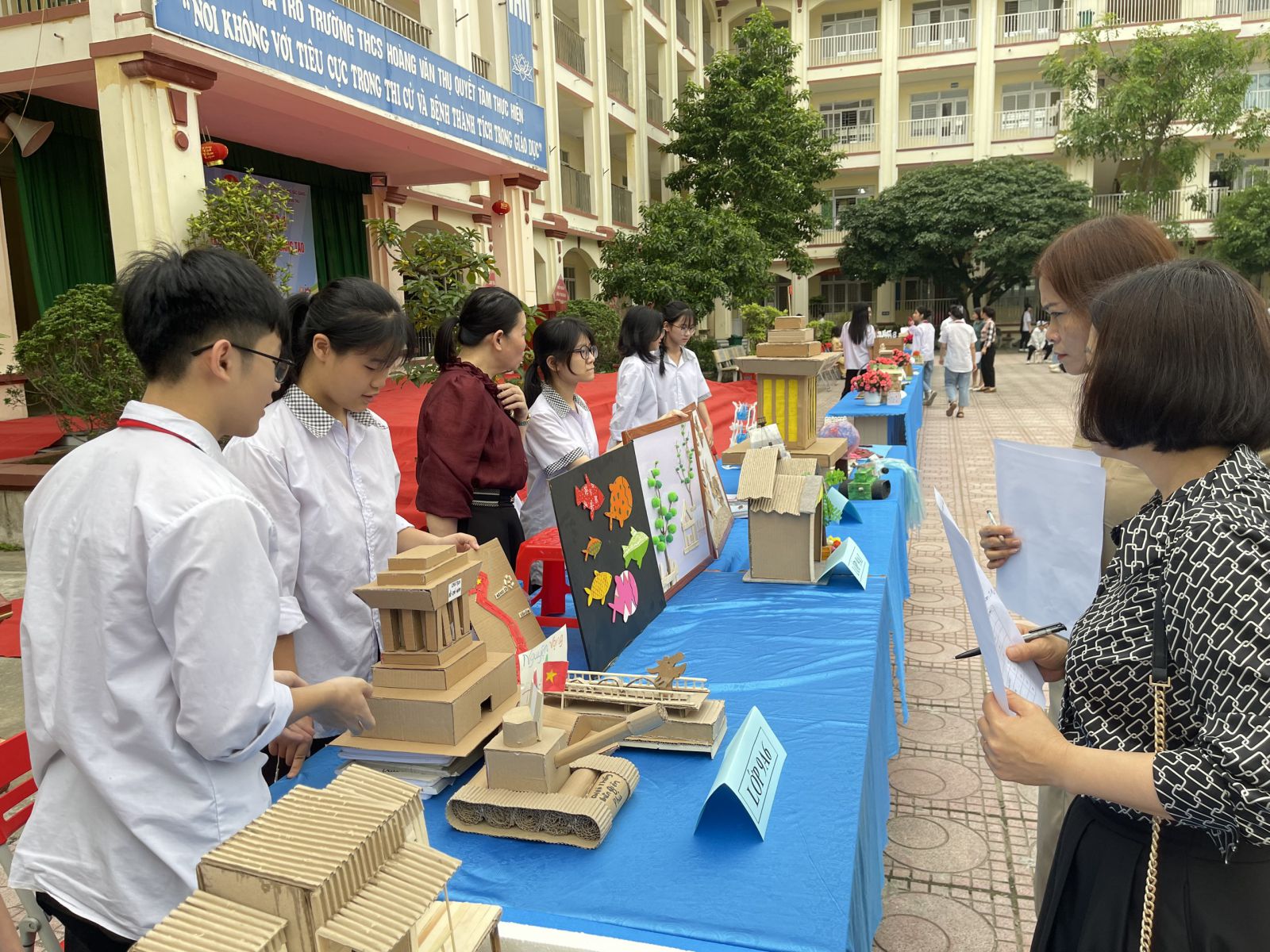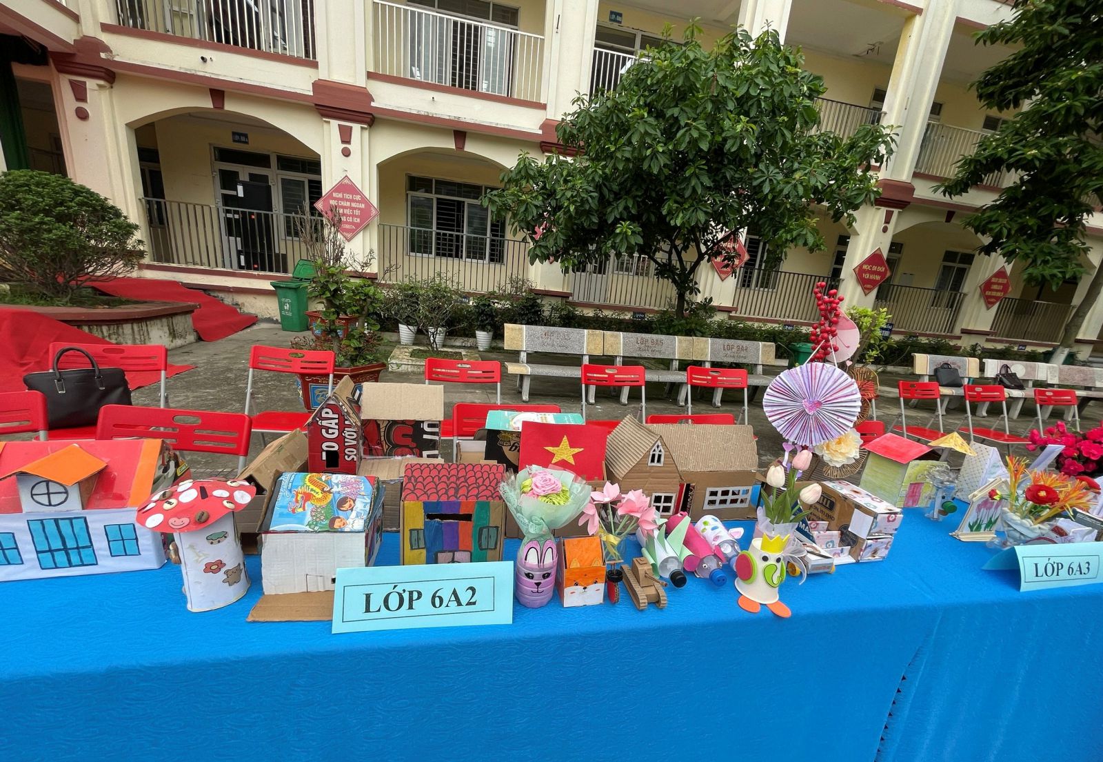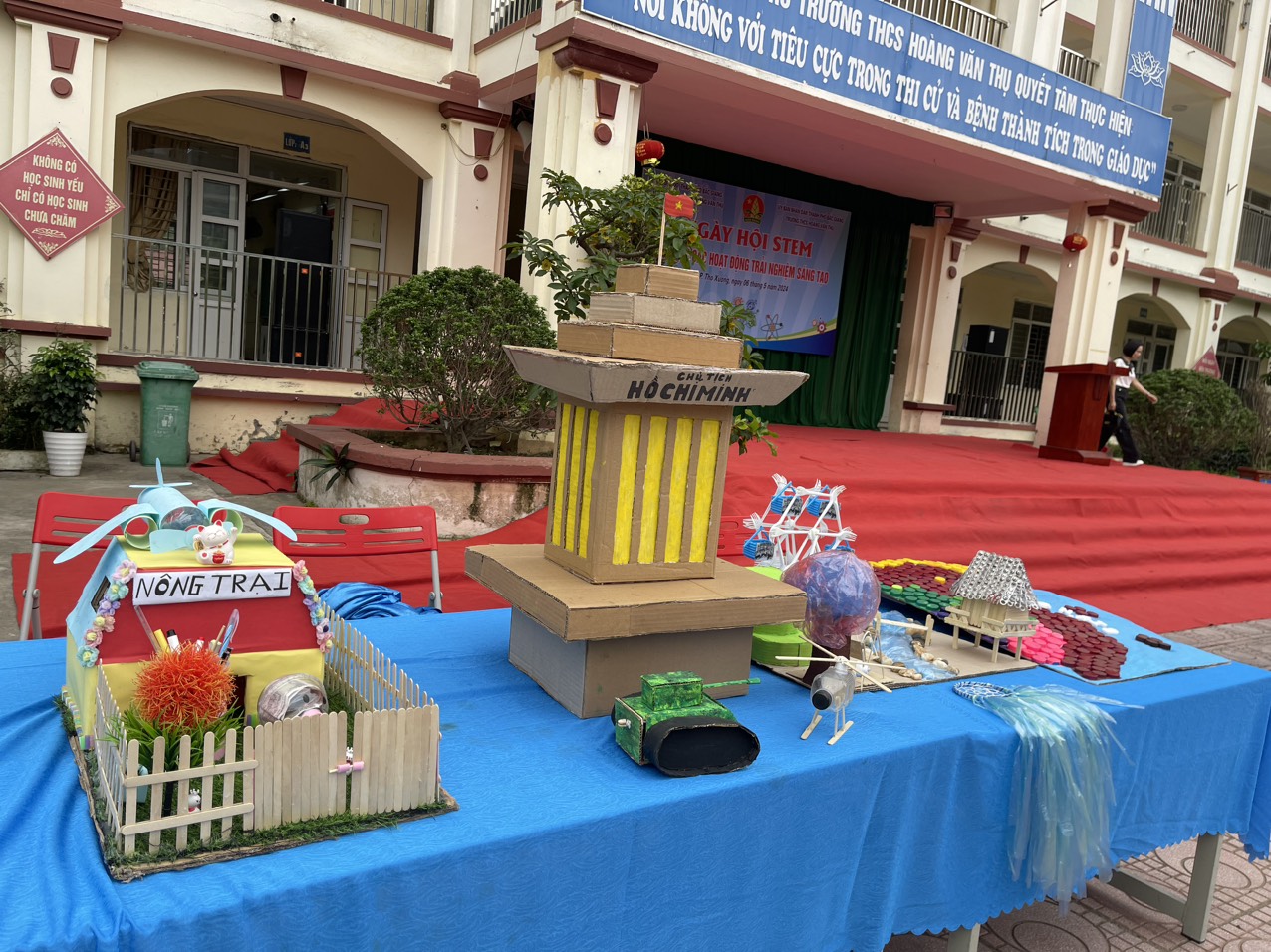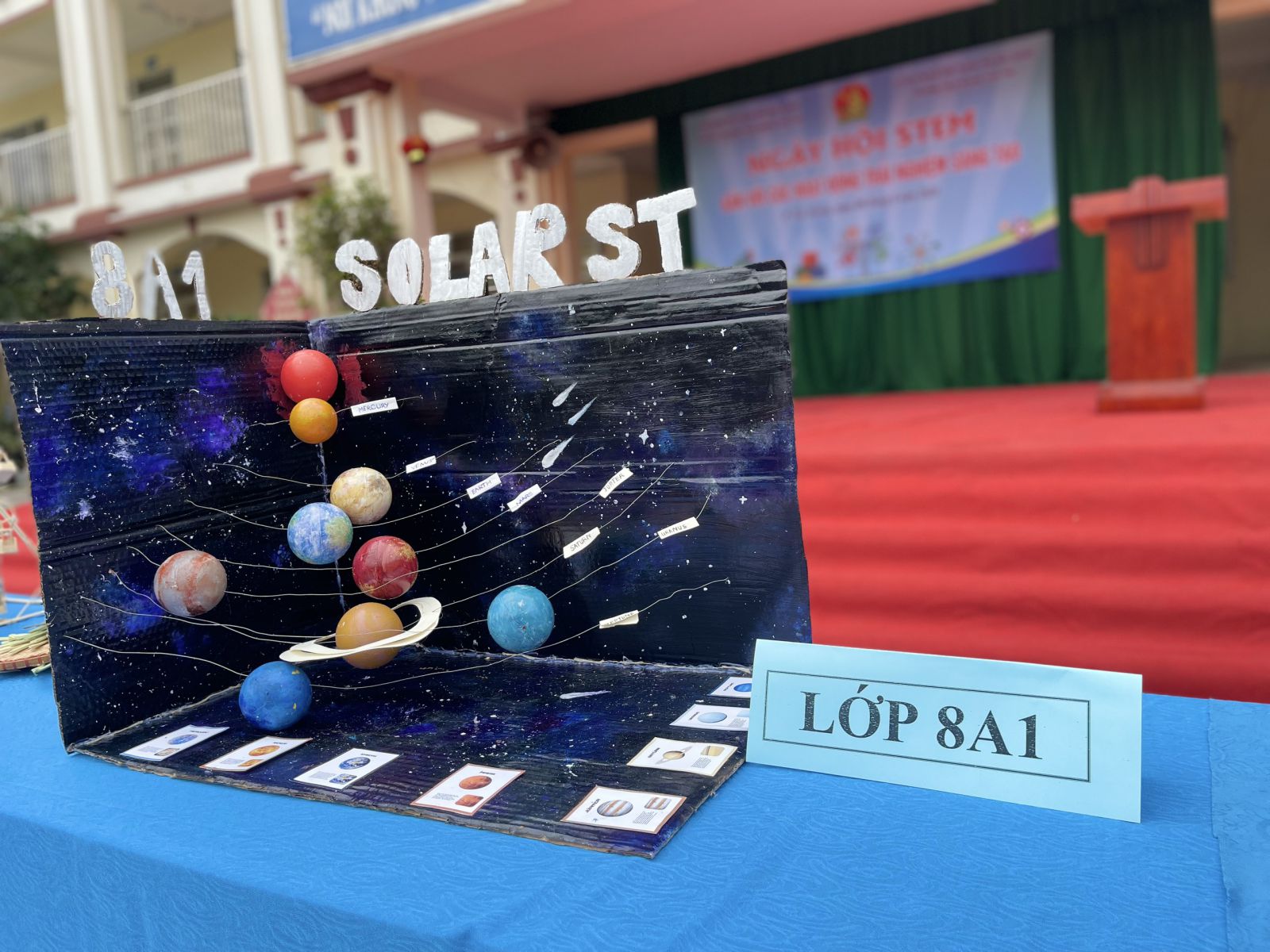 Tham gia ngày hội Stem các em học sinh của nhà trường đã lên ý tưởng và thực hiện dự án với nhiều sản phẩm để trưng bày, những dự án này các học sinh nghiên cứu, chế tạo trên cơ sở vận dụng các kiến thức tích hợp STEM bao gồm: Các loại công cụ, dụng cụ, máy móc, thiết bị, mô hình, phục vụ trong lớp học, trường học. Các thí nghiệm minh họa cho tiết học, mô phỏng các hiện tượng thiên nhiên, mô hình hóa thiết bị, máy móc… Các mô hình sản phẩm trưng bày sử dụng nguyên vật liệu tái chế, đã qua sử dụng, rẻ tiền, thân thiện với môi trường. Các sản phẩm đều có giải pháp khả thi, giải quyết các vấn đề sáng tạo trong lớp học, trường học, gia đình và xã hội. Nhằm mục đích nâng cao chất lượng dạy - học theo hướng phát triển phẩm chất, năng lực học sinh.