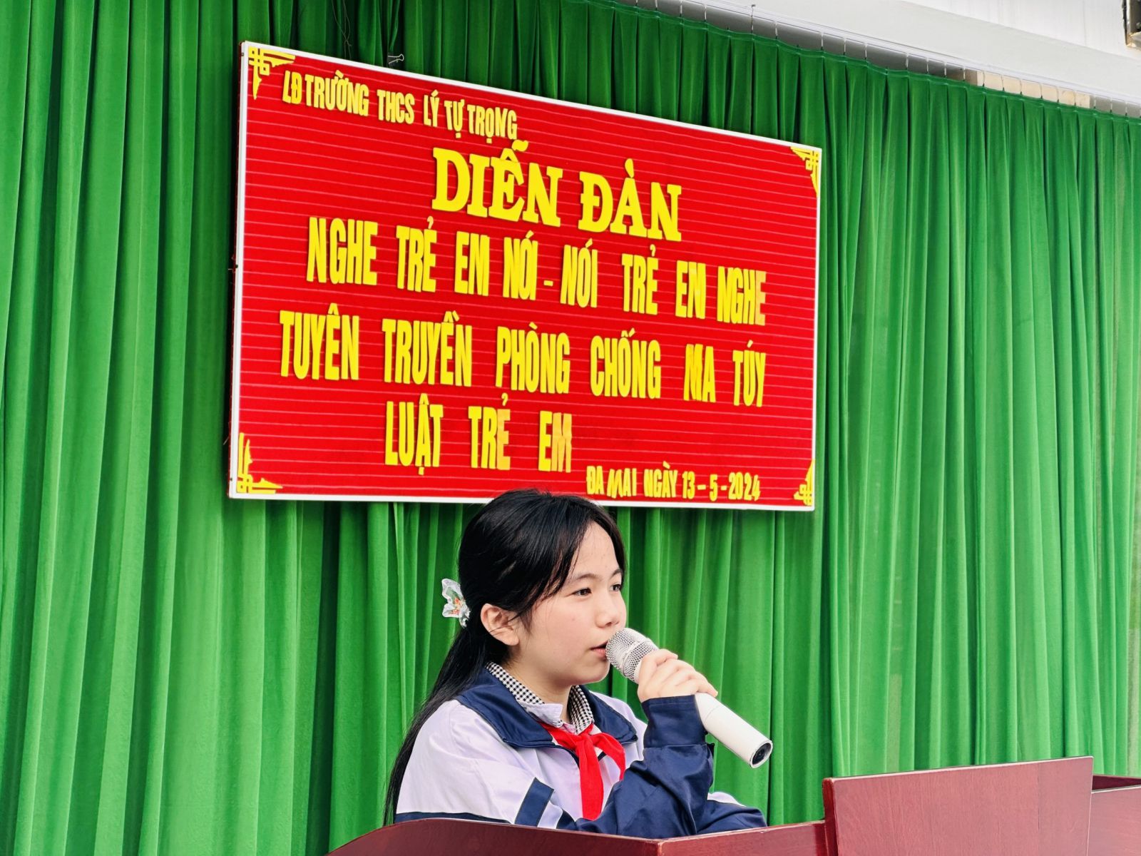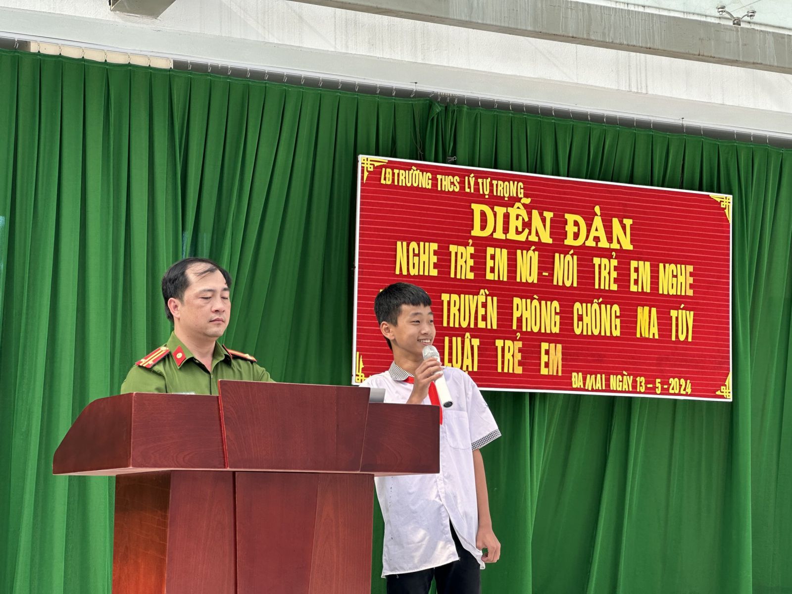 Thực hiện chương trình công tác đội năm học 2023- 2024 của thành đoàn Bắc Giang và phong trào của Liên đội THCS Lý Tự Trọng.Sáng ngày 13/5/2024. Liên đội trường THCS Lý Tự Trọng phối kết hợp với công an phường Đa Mai, Đoàn thanh niên tổ chức: Diễn đàn nghe trẻ em nói – Nói trẻ em nghe. Tuyên truyền Ma túy, luật trẻ em. Tham dự chương trình có đồng chí trung tá Nguyễn Anh Tuấn Phó trưởng công an phường Đa Mai, anh Lương Văn Quang Bí thư Đoàn phường Đa Mai cùng toàn thể các thầy cô giáo và hơn 400 em học sinh.