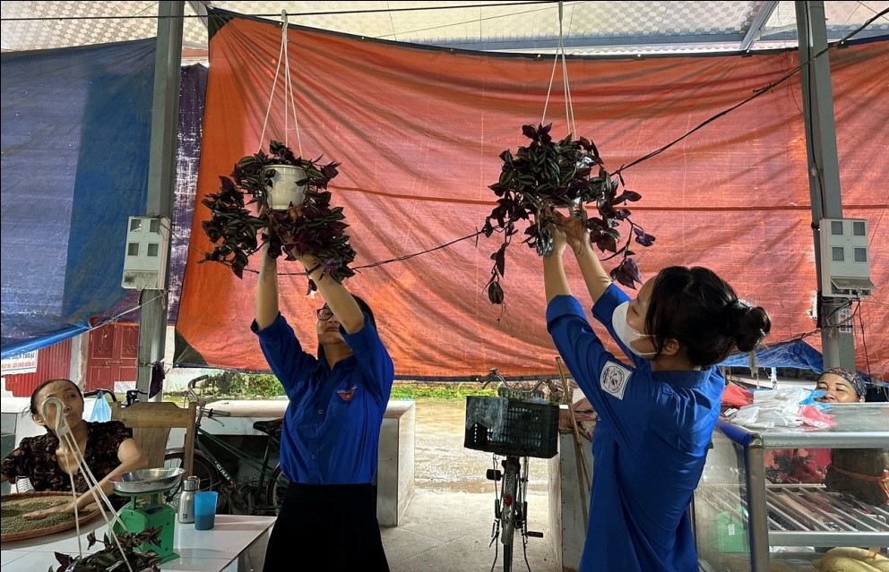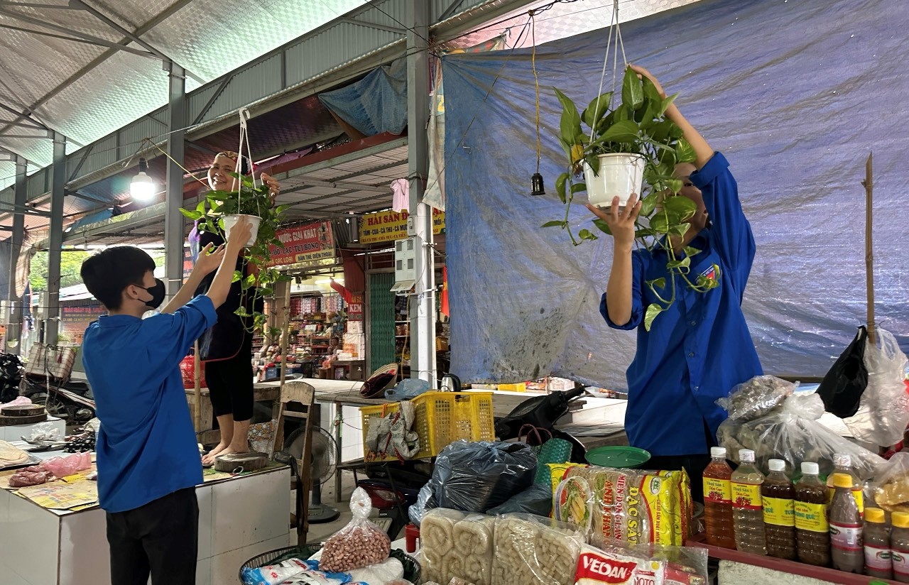 Đoàn - Hội xã đã tổ chức thu gom rác thải nhựa đổi lấy cây xanh treo tại các gian hàng của tiểu thương. Qua thực hiện mô hình đã thu được 20kg rác thải nhựa đổi 50 chậu cây xanh.