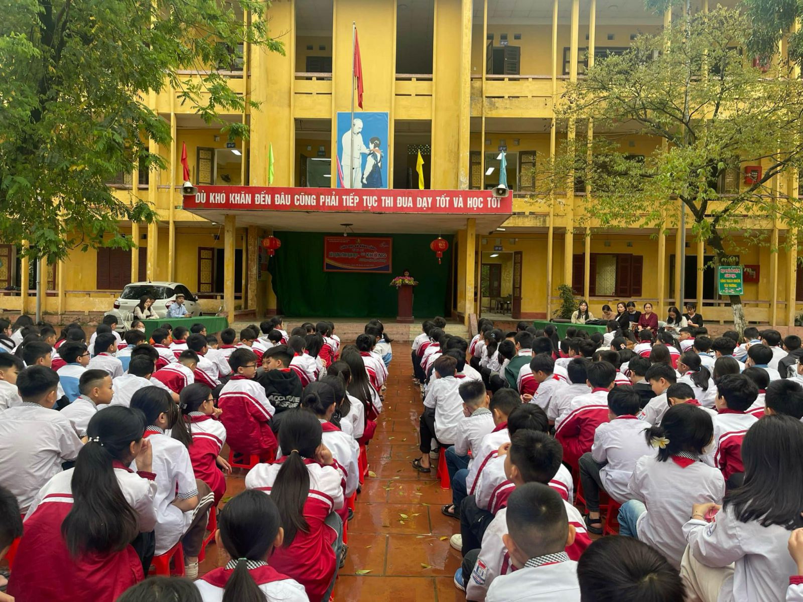 Tham dự chương trình có Ban giám hiệu, các thầy cô giáo cùng toàn thể 100% học sinh nhà trường. Tại chương trình, các em học sinh đã được nghe tuyên truyền về các kỹ năng phòng, chống bạo lực học đường, các hành vi, ứng xử đẹp nên có làm trau dồi tình bạn đẹp giữa các em học sinh.