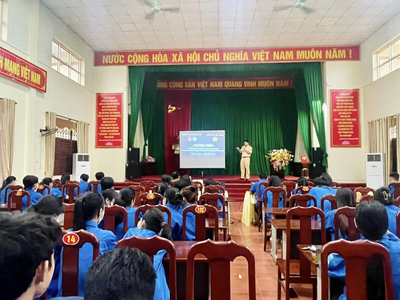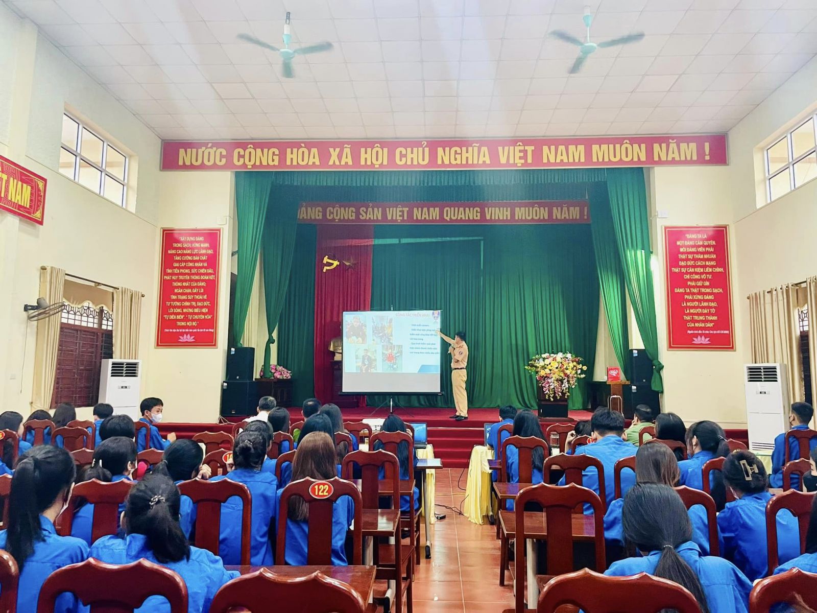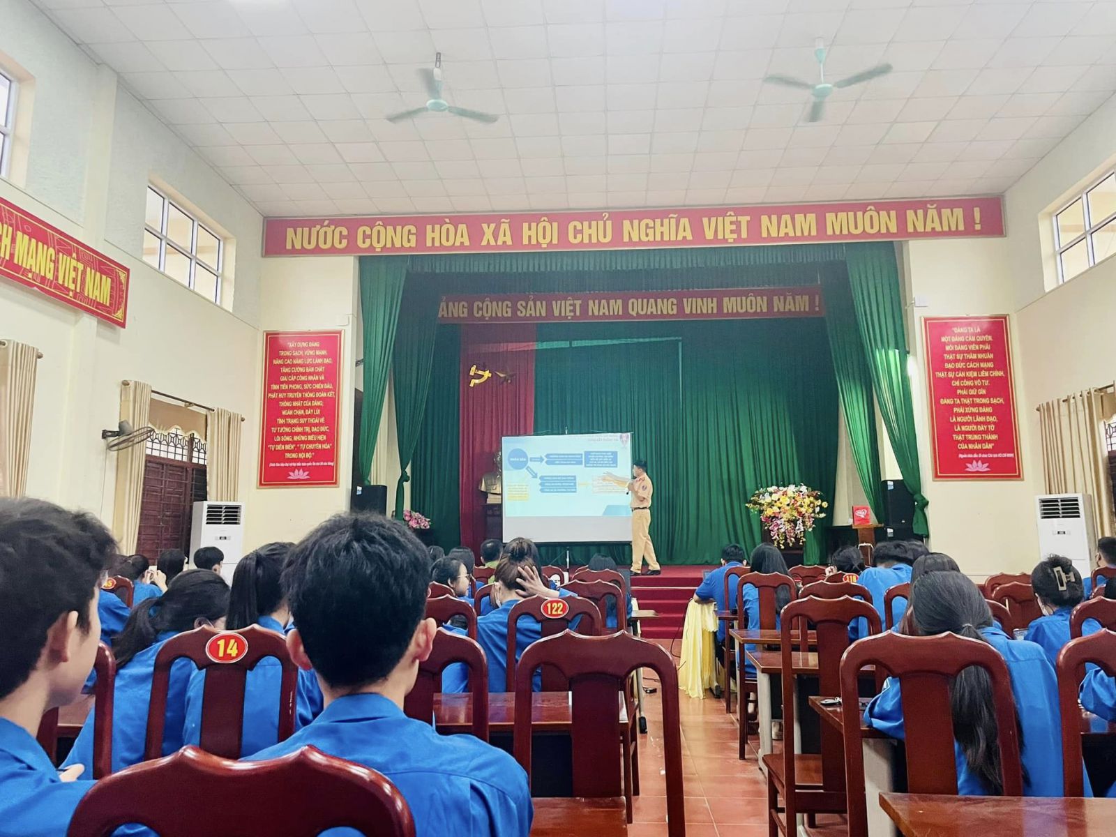 Tham dự chương trình có đồng chí Nguyễn Văn Dương – PBT TT Đảng uỷ xã; Đại uý Trần Văn Hùng – Cán bộ Đội CSGT Công an thành phố; Đại diện Công an xã; Các đồng chí trong BCH Đoàn xã cùng hơn 300 đoàn viên thanh niên.