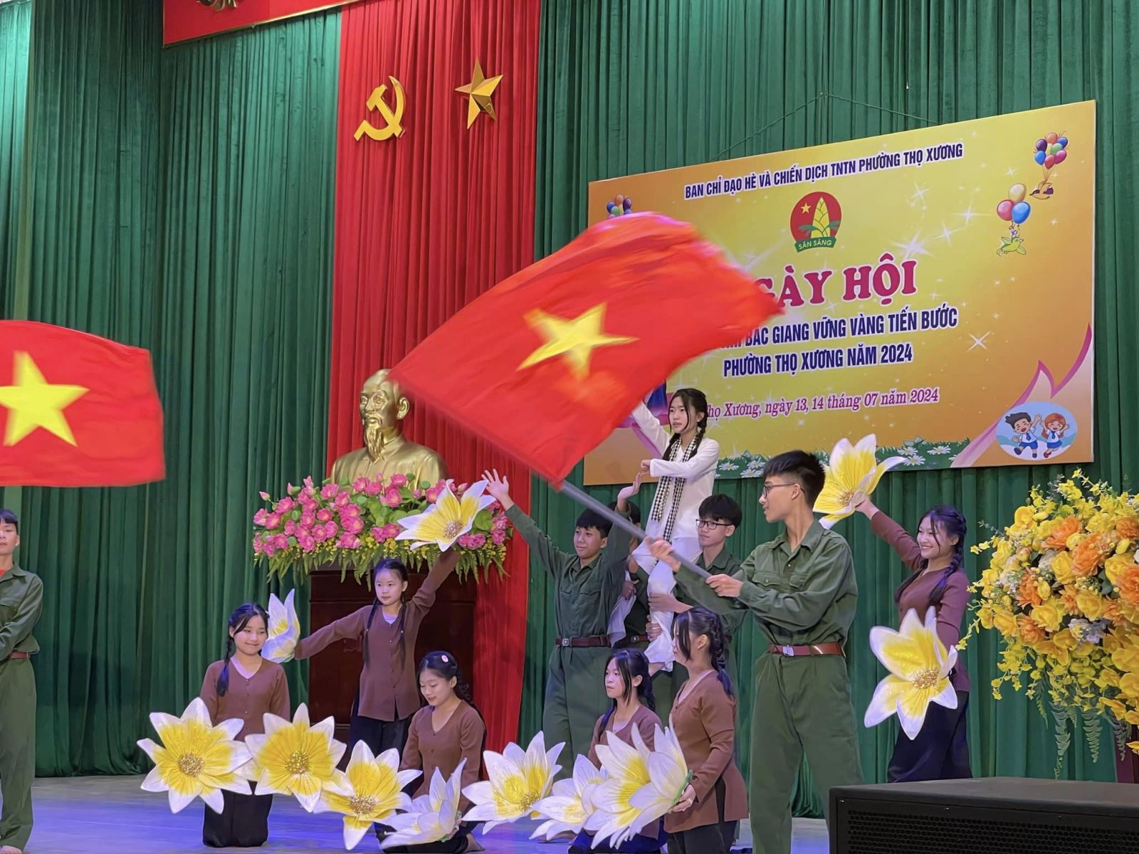 Thực hiện Kế hoạch số 02-KH/BCĐ ngày 28/6/2024 của BCĐ hè và chiến dịch TNTN phường Thọ Xương năm 2024, tối ngày 13/7/2024 tại hội trường lớn UBND phường, BCĐ hè và chiến dịch TNTN phường Thọ Xương long trọng tổ chức hội thi văn nghệ “Thiếu nhi Bắc Giang vững vàng tiến bước” năm 2024.