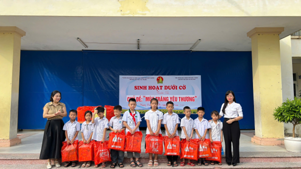 Cũng trong buổi nay 16/9/2024, nhà trường đã phối hợp với Hội LH Phụ nữ phường Hoàng Văn Thụ vận động ủng hộ được 20 xuất quà do bà Đào Thị Thu Hằng chuyên viên Hội LH Phụ nữ thành phố Bắc Giang tặng các em HS nghèo, học sinh có hoàn cảnh khó khăn của trường nhân dịp Tết Trung thu.