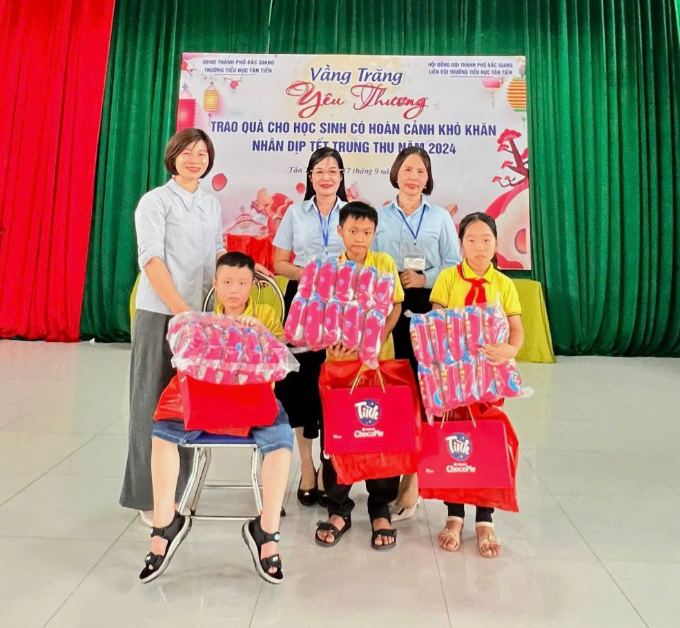 Ngày 17/09/2024, Trường Tiểu học Tân Tiến phối hợp với Đoàn Thanh niên, Đội thiếu niên tổ chức trao những phần quà ý nghĩa đến 25 em học sinh nghèo, học sinh có hoàn cảnh khó khăn nhân dịp Tết Trung thu . Những phần quà này không chỉ mang ý nghĩa vật chất mà còn là nguồn động viên tinh thần, giúp các em vượt qua khó khăn trong cuộc sống và học tập.