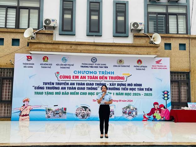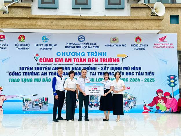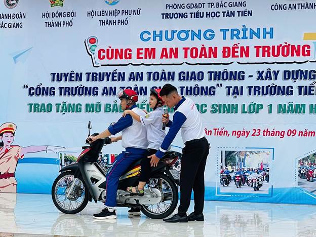 Tham dự chương trình, có đồng chí Đồng Xuân Trường - Đại diện Công ty thương mại Trường An – Xe máy Long Hưng; đồng chí Nguyễn Mạnh Hùng – Đại úy, cán bộ đội CSGT, trật tự Công an TP Bắc Giang; đồng chí Nguyễn Thị Út Ba, Hiệu trưởng Trường Tiểu học Tân Tiến; cùng toàn thể các thầy cô giáo và hơn 1000 em học sinh của Trường Tiểu học Tân Tiến.