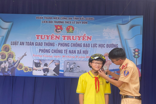 Ngày 30/9/2024, Liên đội Trường THCS Lê Quý Đôn đã phối hợp với Phòng công tác Đảng và công tác chính trị Công an tỉnh Bắc Giang tổ chức hoạt động ngoại khóa “Tuyên truyền về Luật an toàn giao thông, phòng chống bạo lực học đường, phòng chống tệ nạn xã hội” cho hơn 586 em học sinh và giáo viên trong toàn trường.
